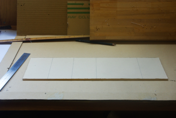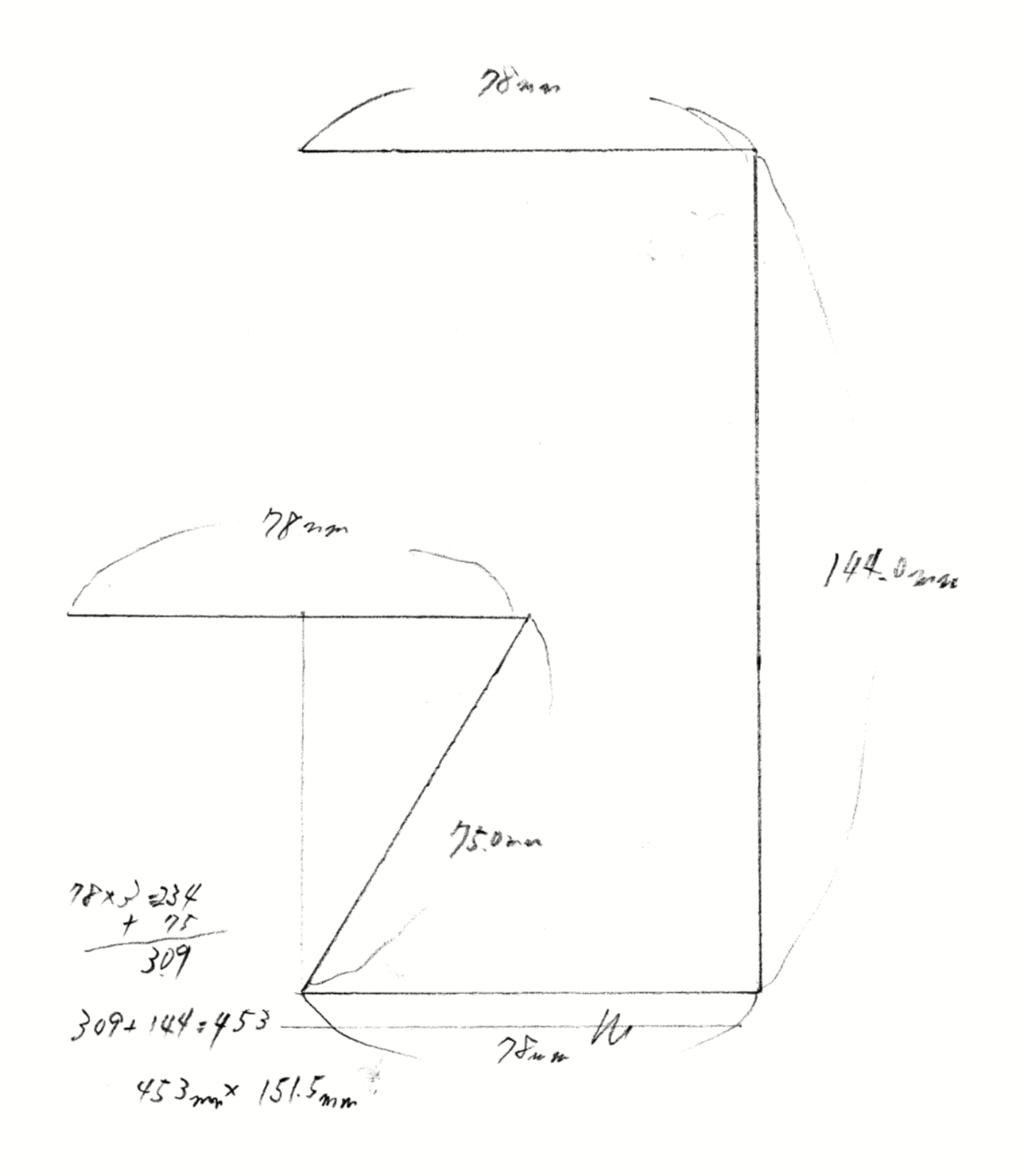 次に全体の長さ(453㎜)を決めてカットし、折り曲げ線を両面に引きました。