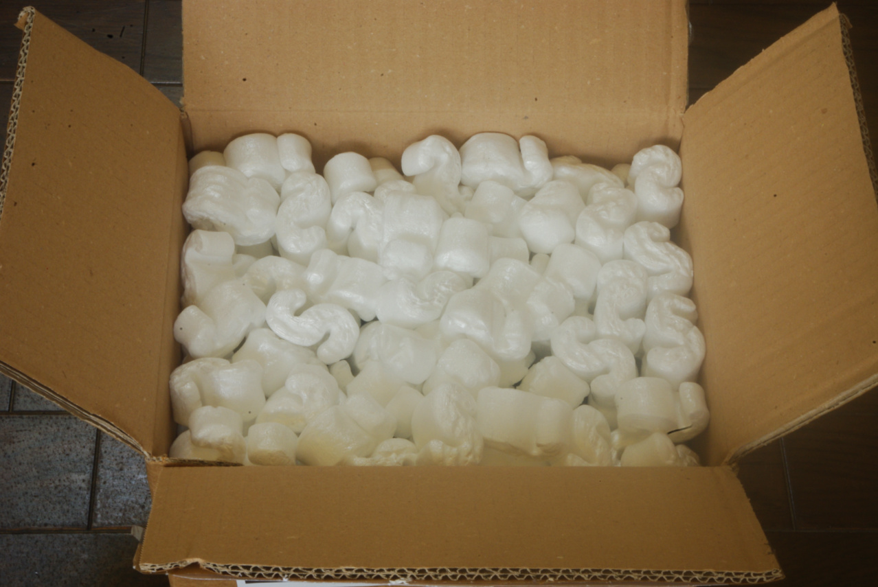早速開梱すると発泡スチロールの緩衝材が箱一杯に詰め込まれていました。