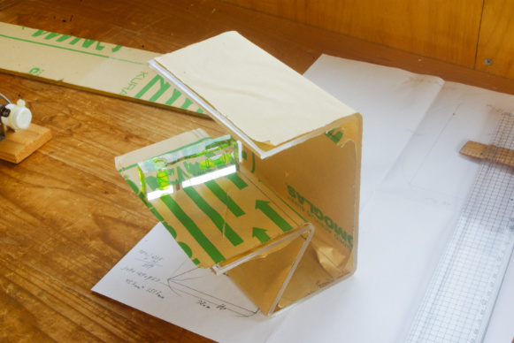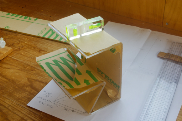 折り曲げ作業が終わりましたので、最上段の棚の水平をチェックしました。