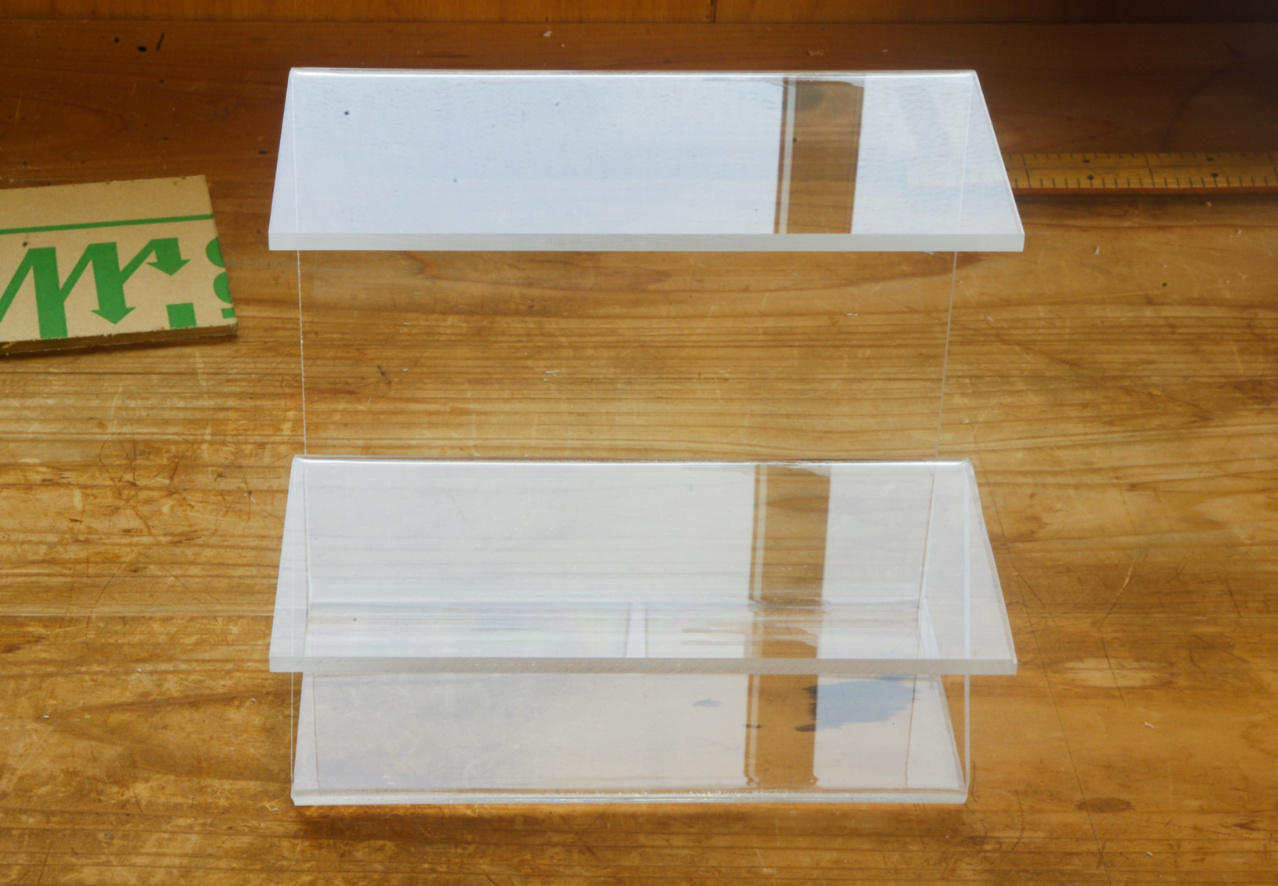 ご覧の通り2枚の棚板はディスプレイケースの台座のサイズとピッタリ同じサイズです。
