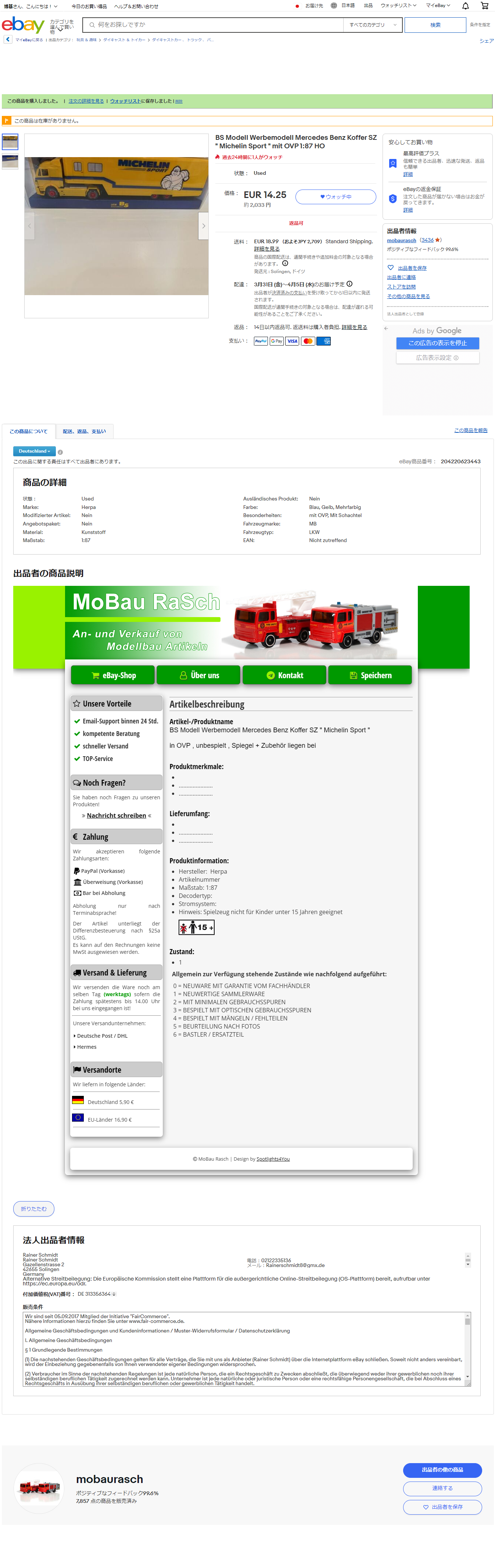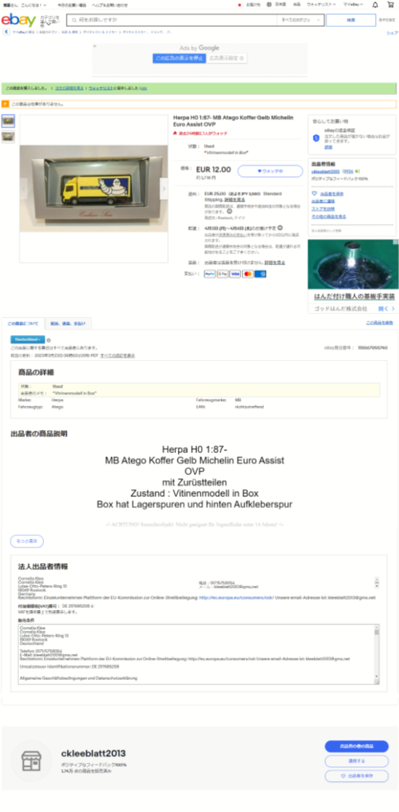 尚、この商品ページのスクショの商品タイトルにありますWerbemodellとは「広告モデル」のことです。