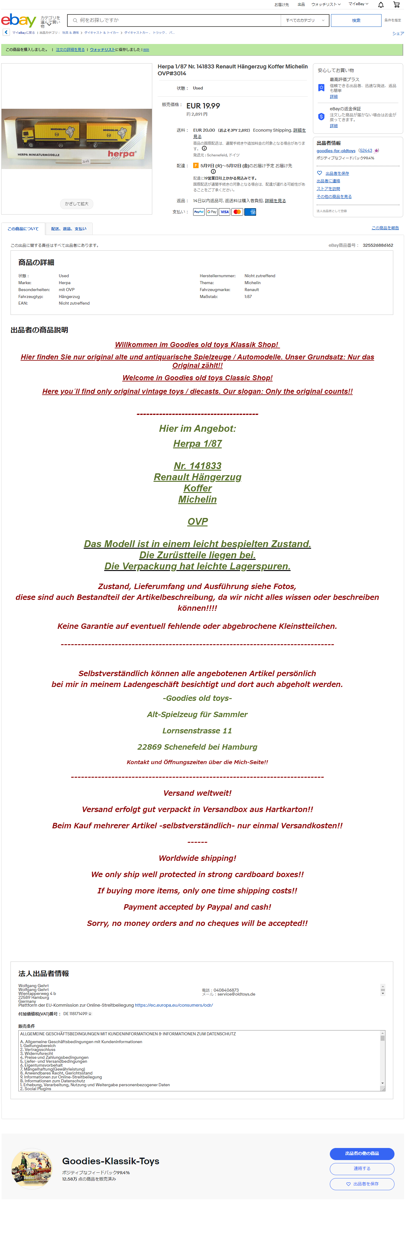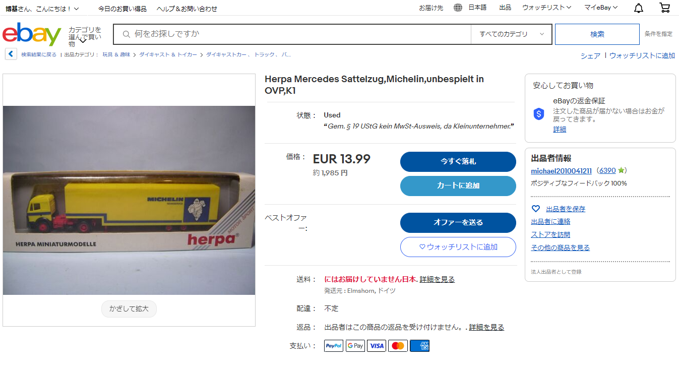 この1年Miniature Car 収集に勤しんで参りましたが、購入先を探すために主なプラットフォームであったeBay USAサイト内を検索中、常に気に掛けていたMiniature CarのメーカーにこのHerpaというブランドがありました。