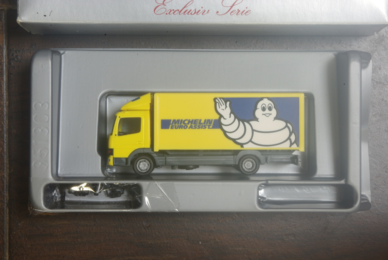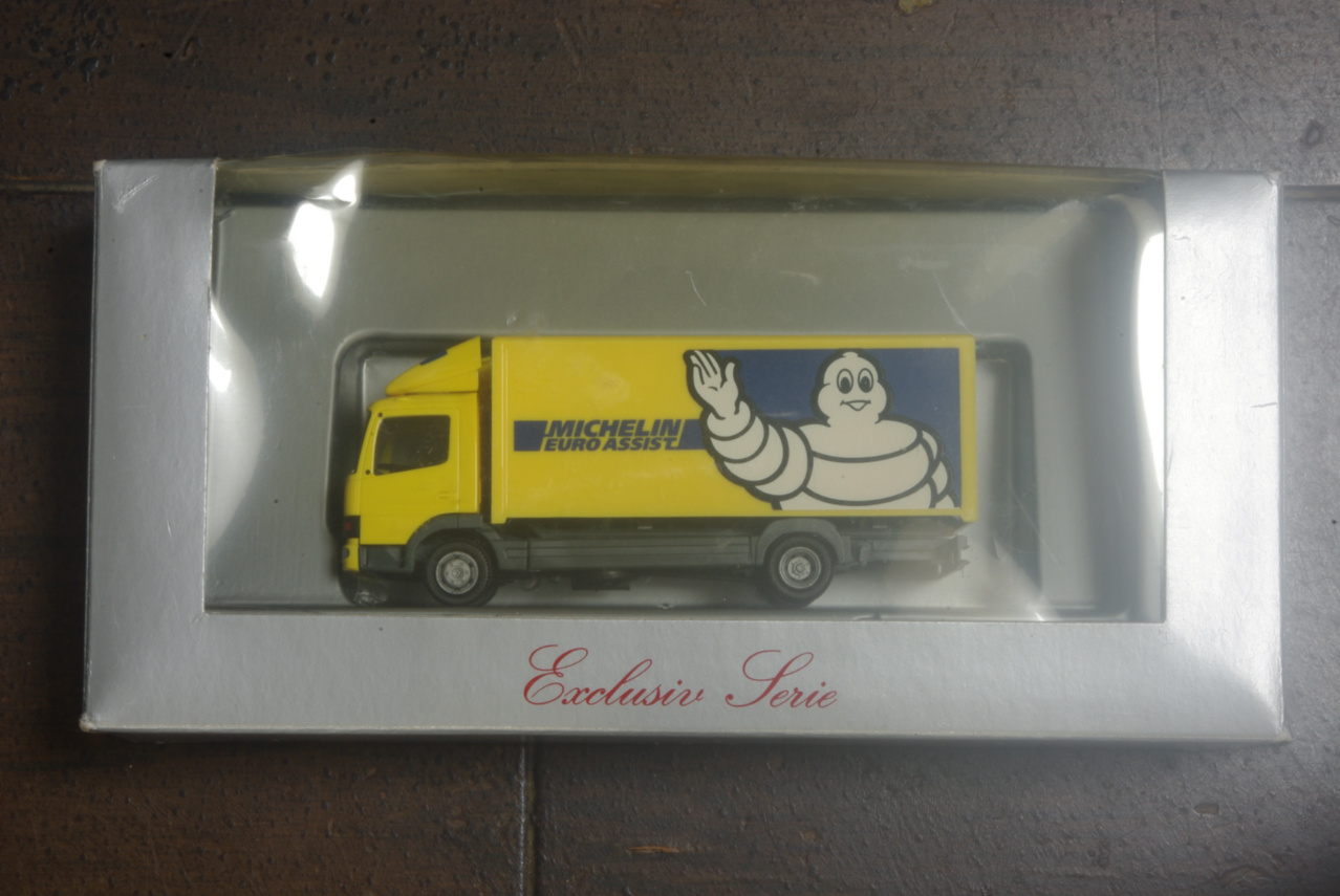 Herpa H0 1/87- MB Atego Koffer Gelb Michelin Euro Assist OVPです。