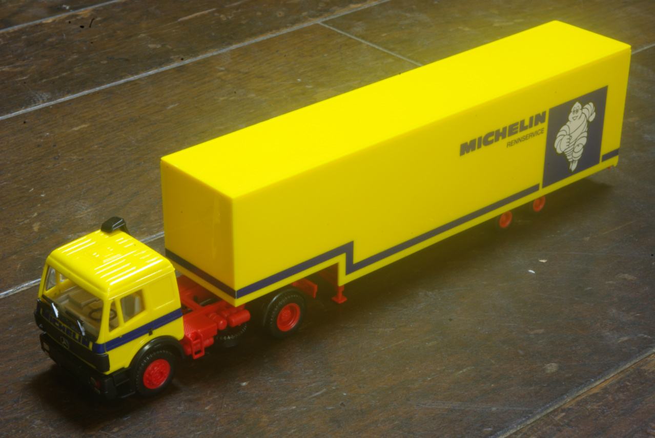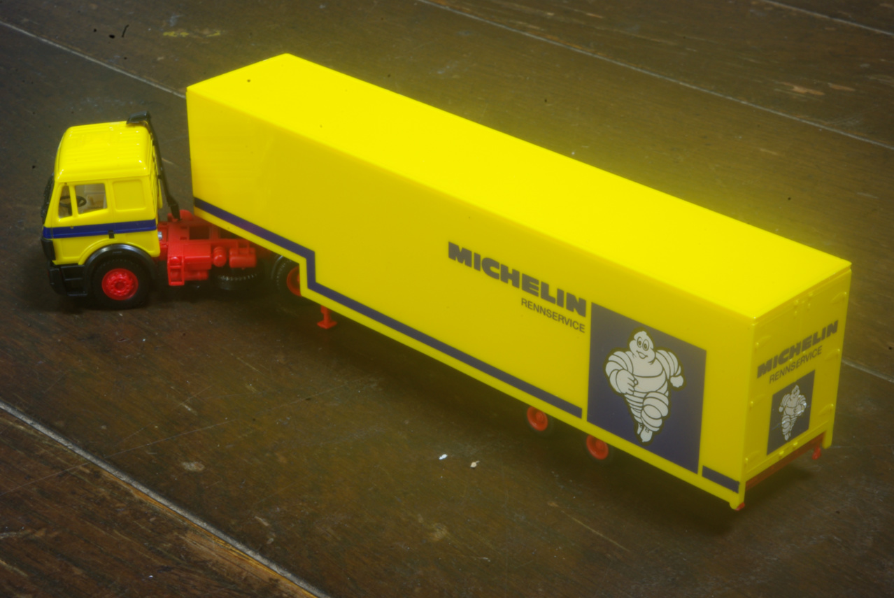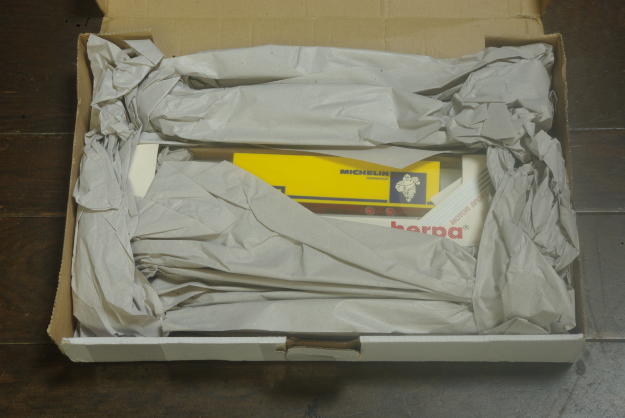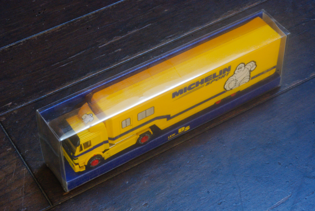 さてオリジナルパッケージに包まれたB&S 1/87 Mercedes-Benz SK Michelin Sport Sattelzug OVPが姿を見せました。
