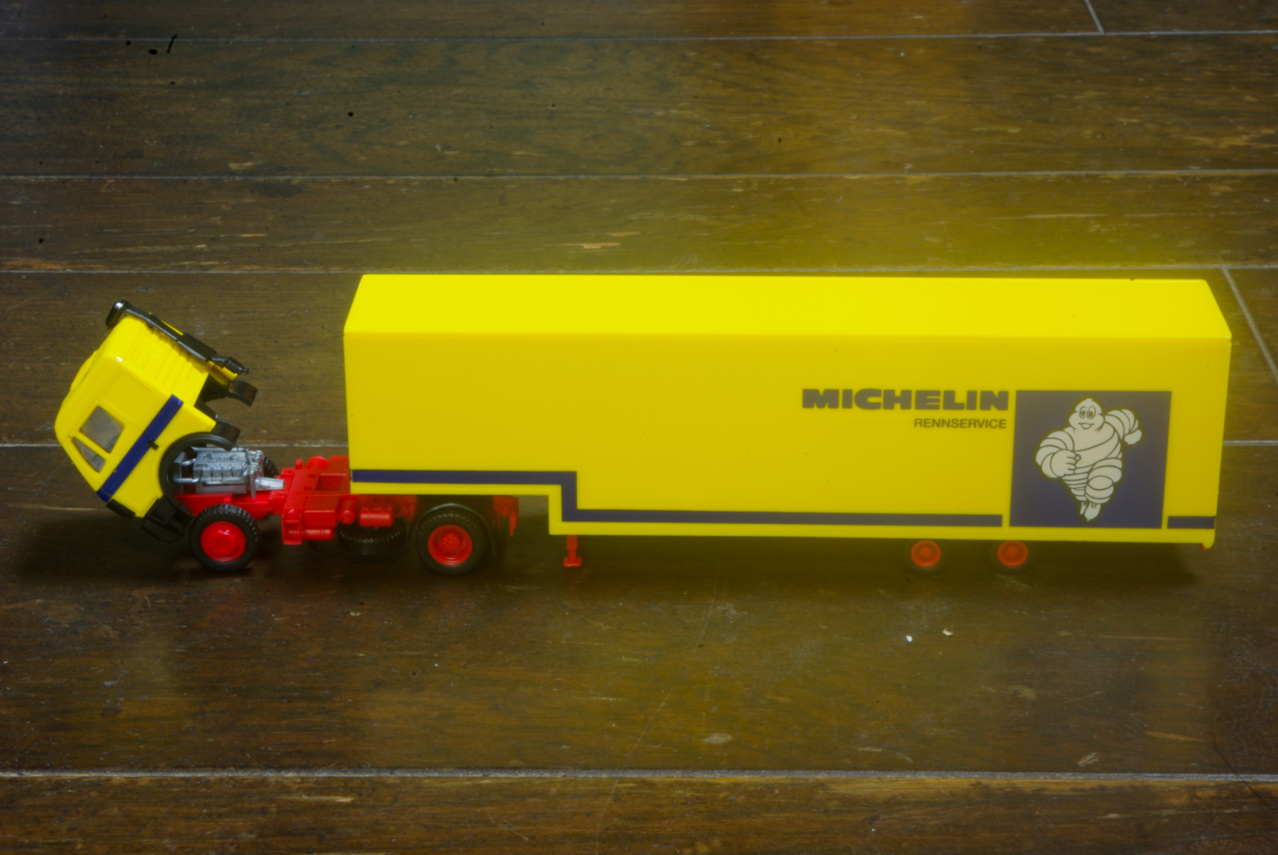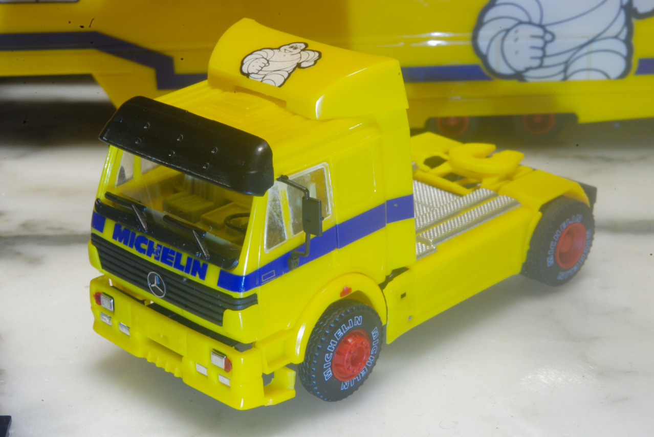 全体的にはMotorsport MB semi-trail "Michelin racing service"と非常に良く似た構造ですが、このMercedes-Benz SK Michelin Sport Sattelzug の方がよりスポーティーにモディファイされています。