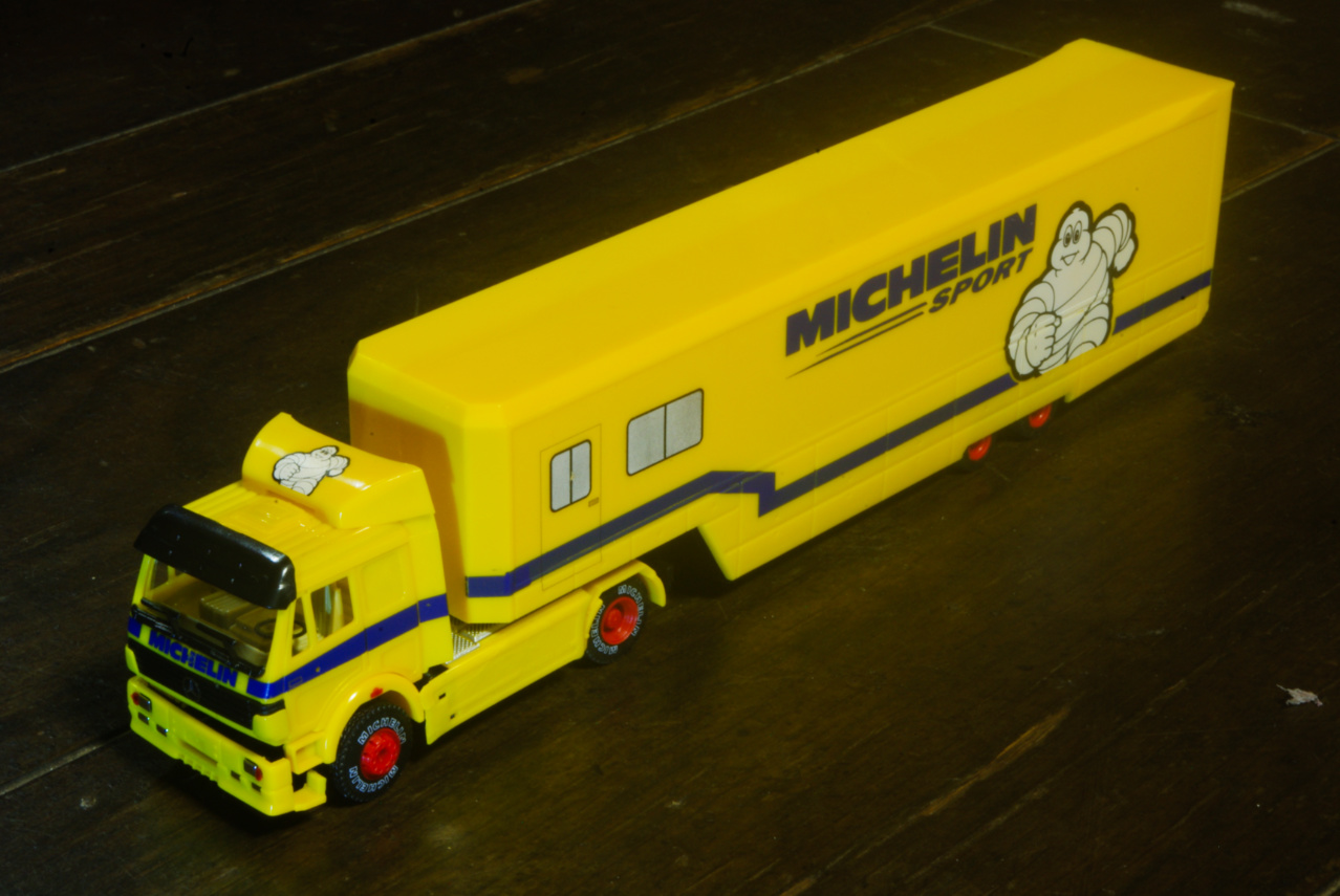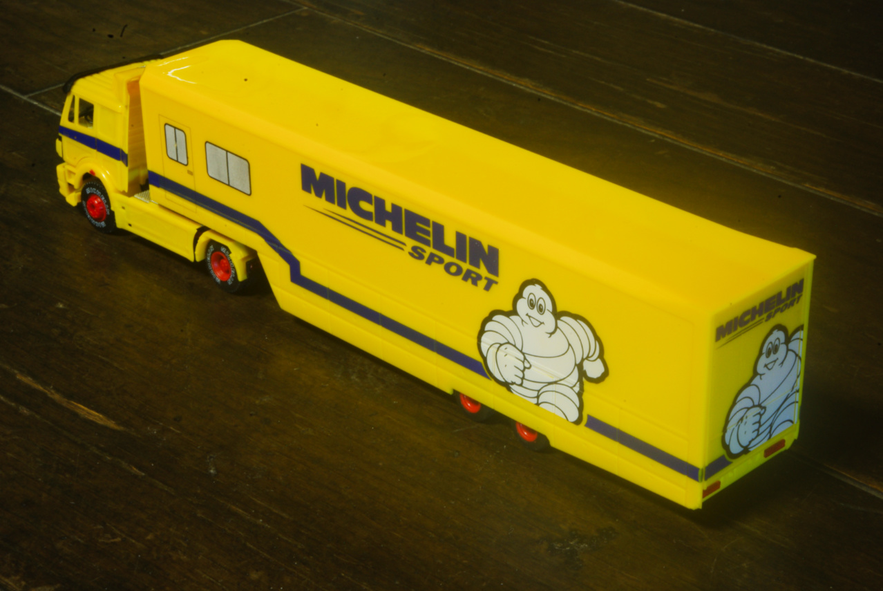 MICHELIN RENNSIRVICEつまりミシュランレーシングサービスとありますから、これは明らかにモータースポーツ用のトランスポーターです。