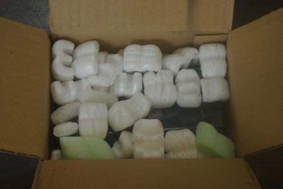 段ボール箱に発泡スチロールの緩衝材というオーソドックスな梱包です。