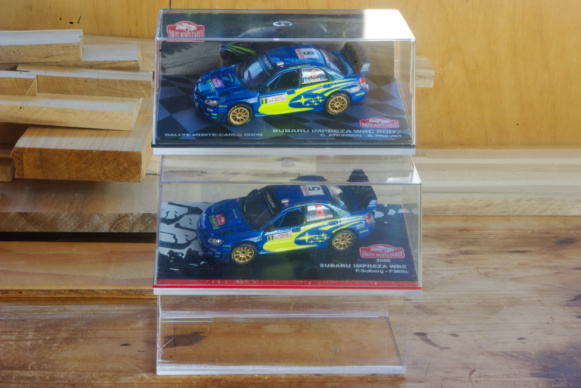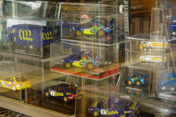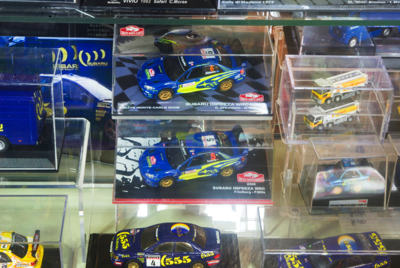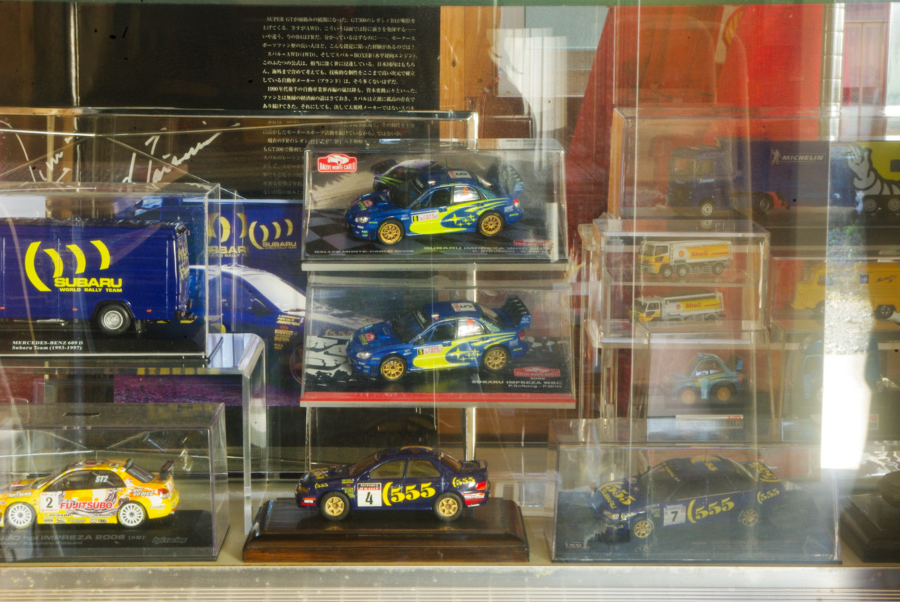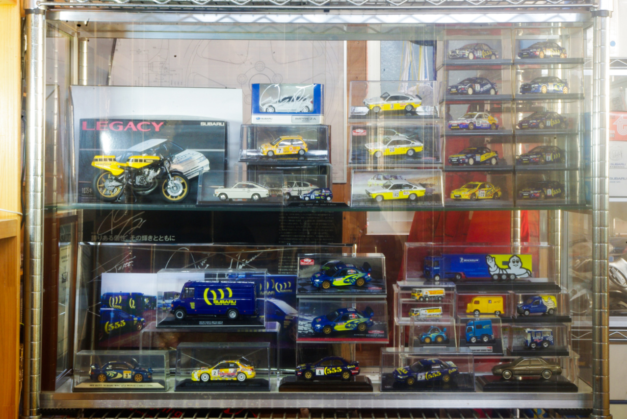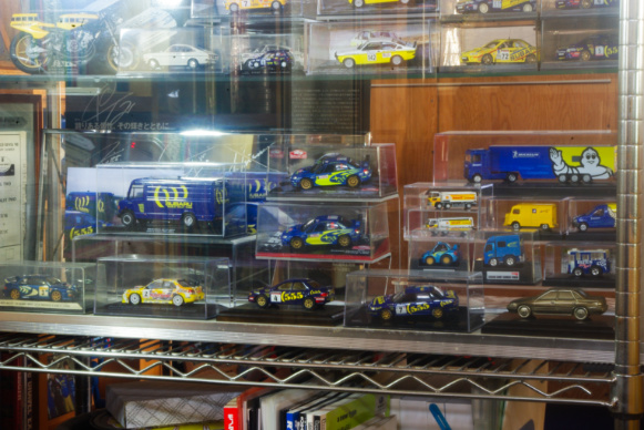 さてSUBARU Impreza S12B WRC 2007が2台揃ったこの日に、早速計画通り談話コーナーのショーウインドーに展示することにしました。
