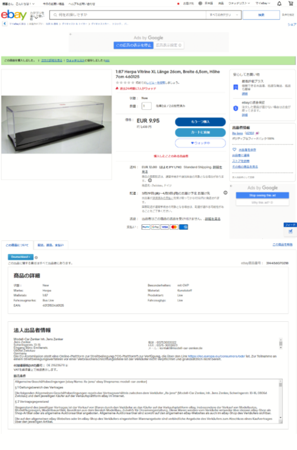 そして何よりも相手先がドイツであること、すべての商品が同一出品者であるとは限ら無いということも考慮に入れますと、夫々のやり取りを含めて取引のすべてが私の一存という訳にはいかないのがこの取引の難しいところだと思います。