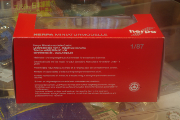そしてそれから2ヶ月以上経ちまして、少し前5月25日にHerpa Michelin Modell VOLVO 1/87の購入を受けて、この日に再度このHerpa Neuware PC-Vitrine für Sattelzug (neue Generation) Nr. 055178 /HN13ディスプレイケースを購入致しました。