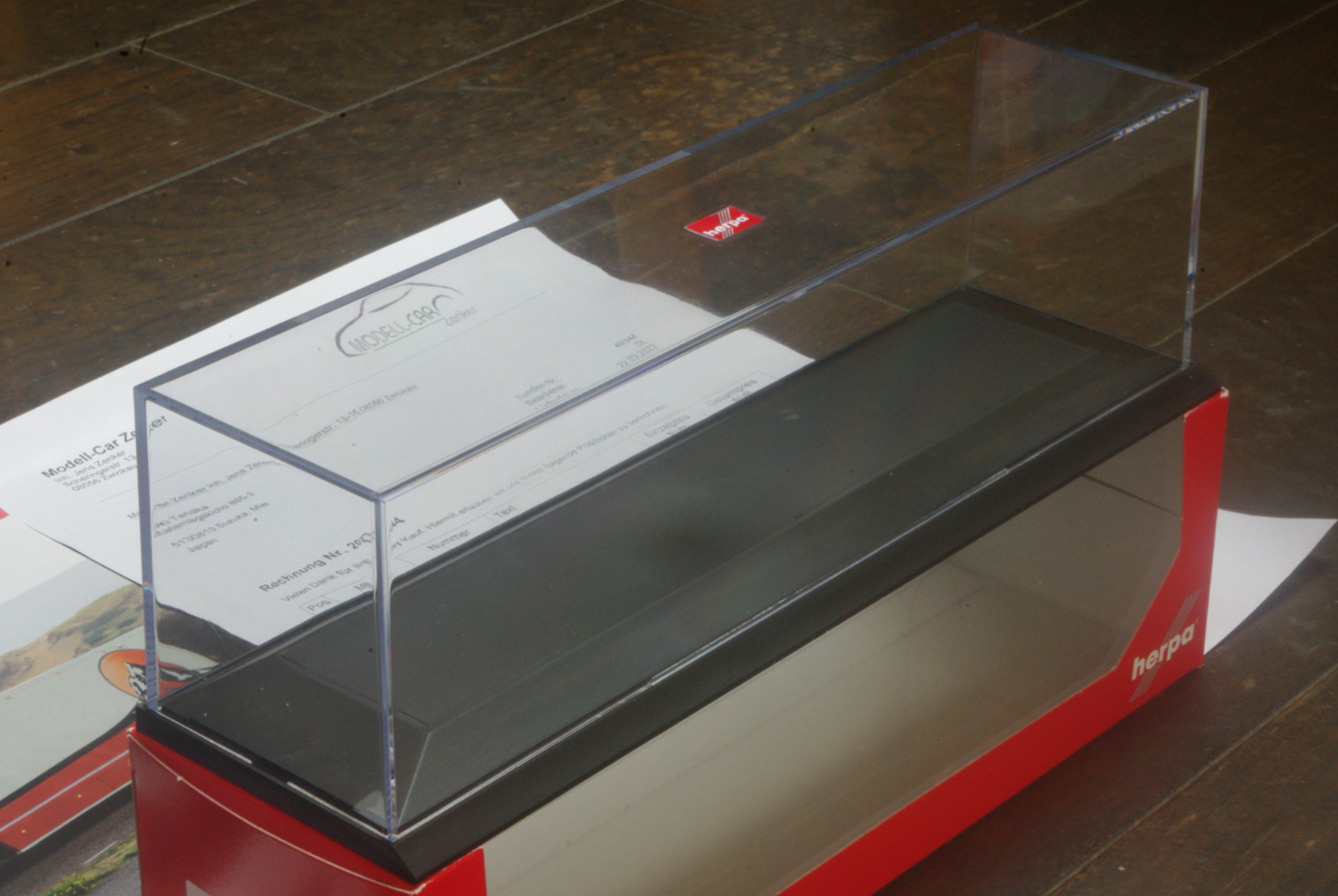 このディスプレイケースは商品番号から私が最初に購入しました1/87 Herpa Vitrine XL Länge 26cm, Breite 6,5cm, Höhe 7cm 460125ディスプレイケースと同じものです。