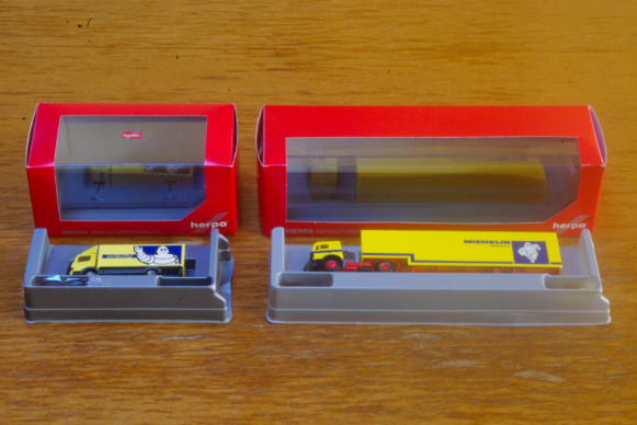 と申しますのも、この日までにHerpa 1/87- MB Atego Koffer Gelb Michelin Euro Assistと、No. 4512 Herpa Motorsport MB semi-trail "Michelin racing service" 1/87、B&S 1/87 Mercedes-Benz SK Michelin Sport Sattelzug、と既に3台のHerpatrucksattelzuk(semi-trail)を購入していたからです。