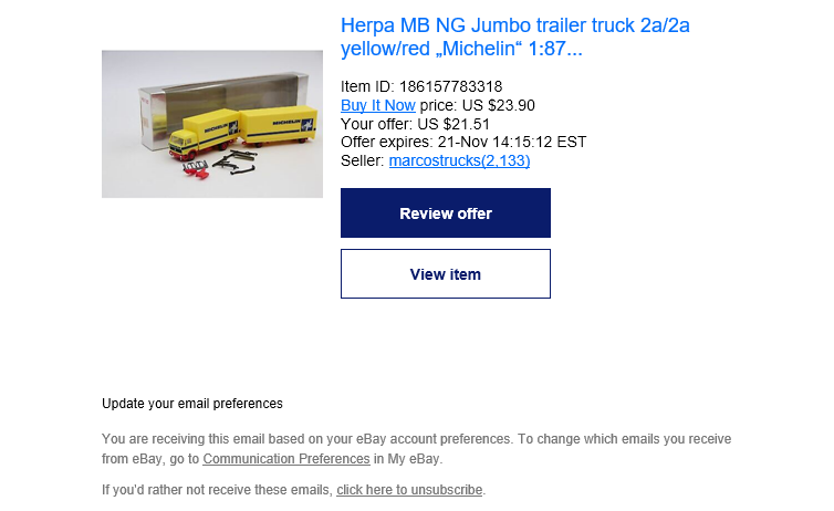 購入に際し商品価格の値下げをオファーしましたところ、左のスクショ通り承諾された旨のメールを受信しました。