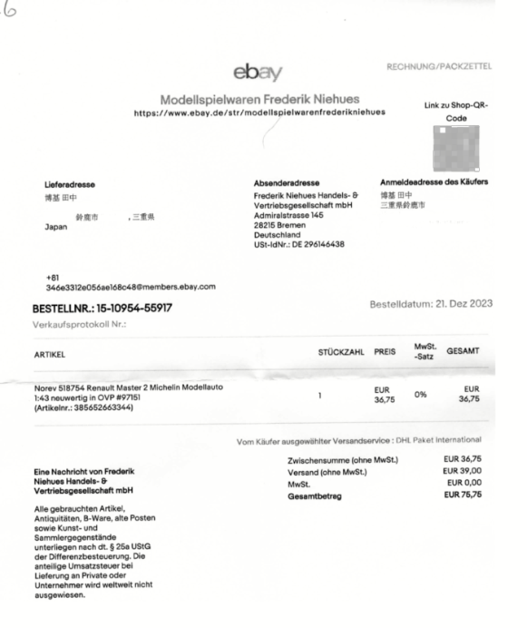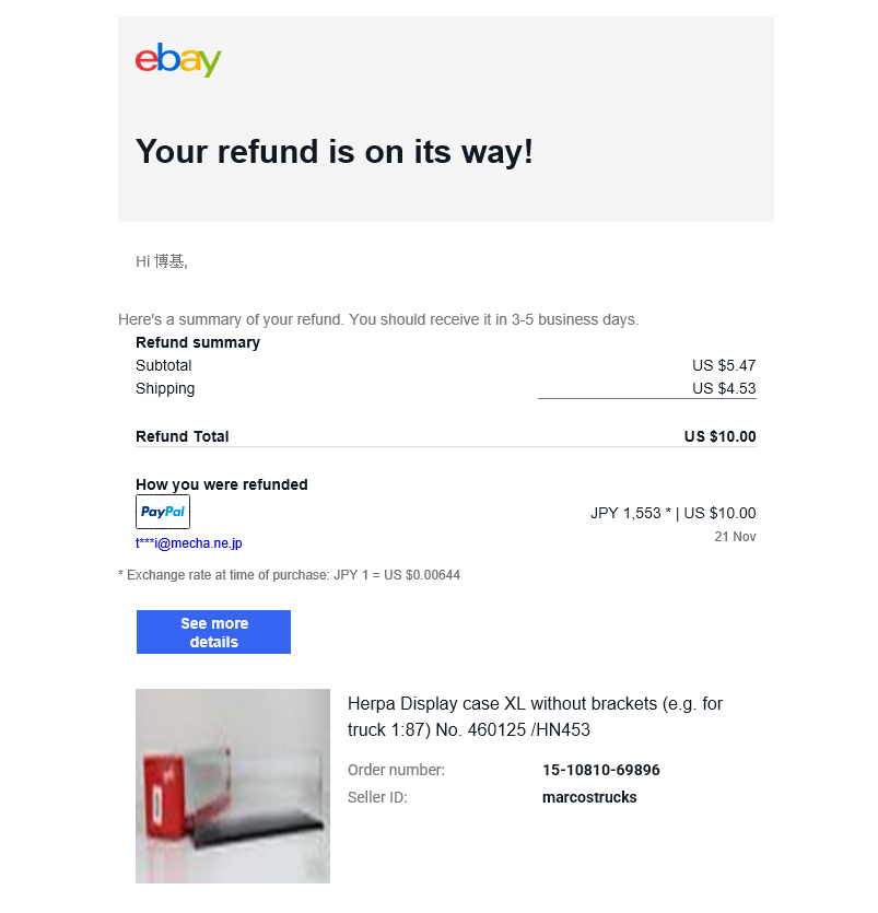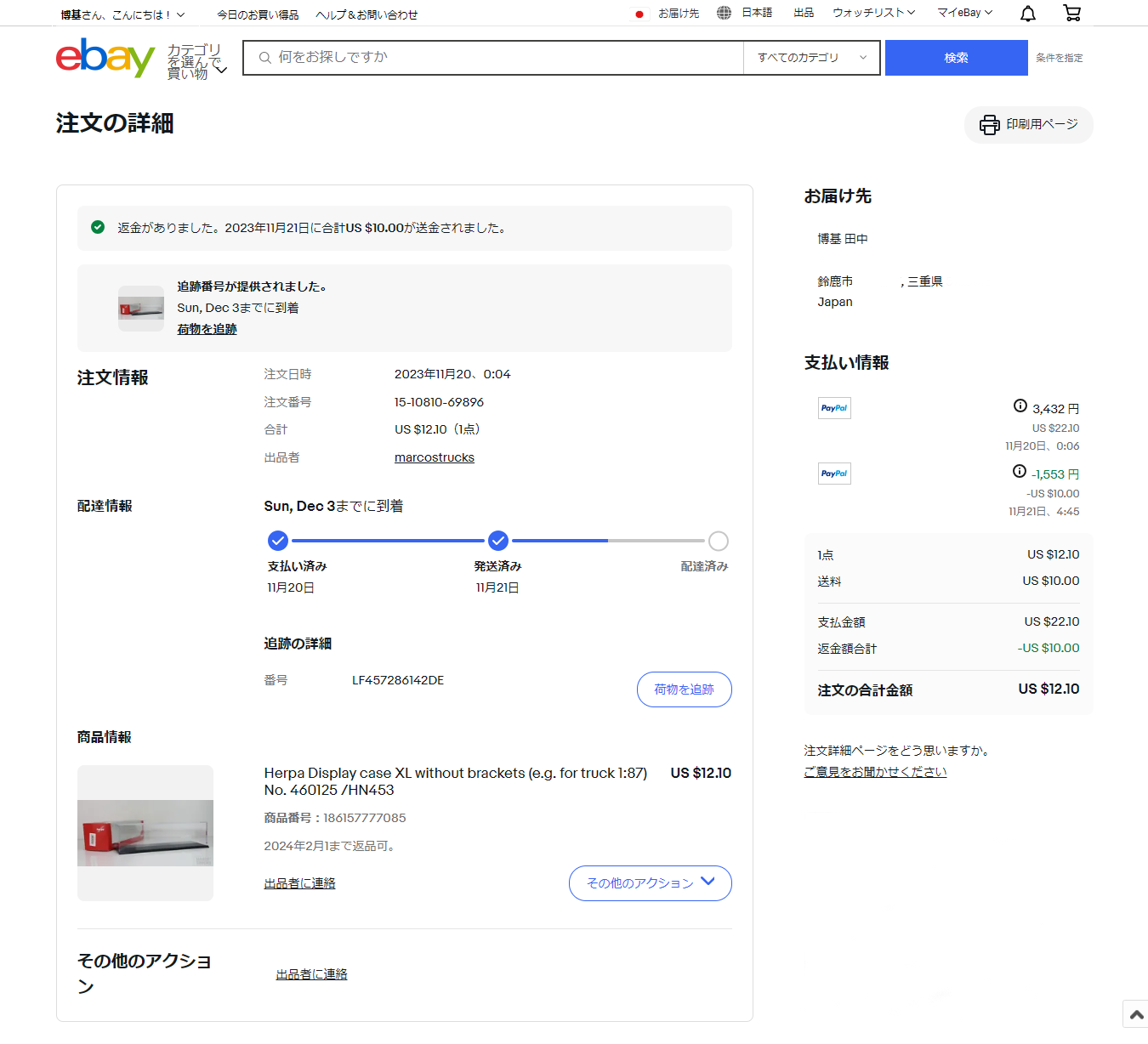 そう考えるとeBay USAやPayPal、そして出品者がとても良心的だと感じました。
