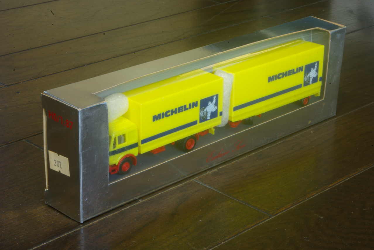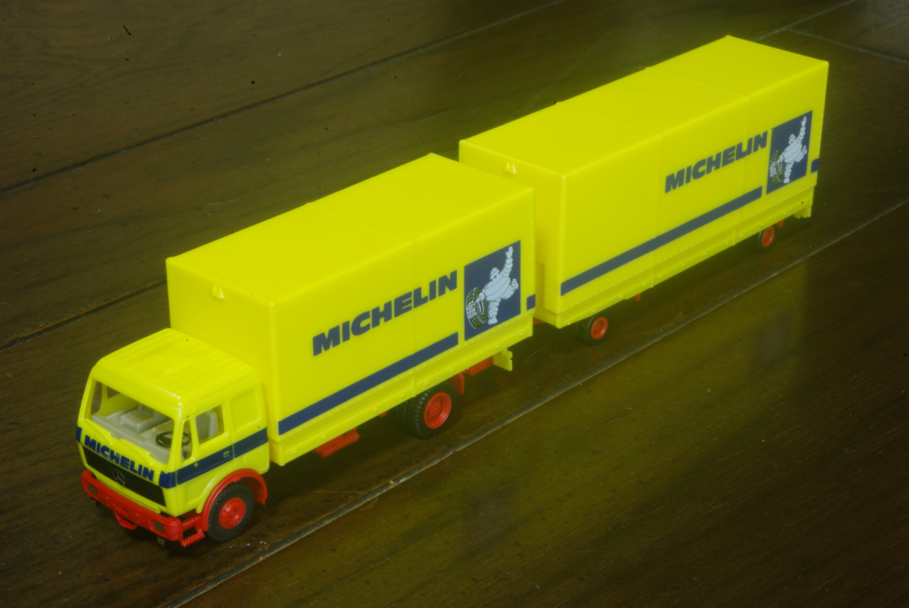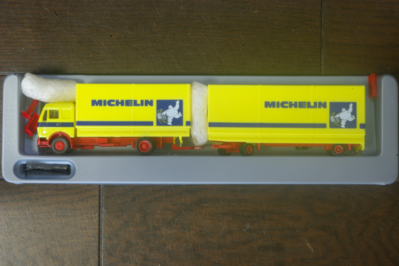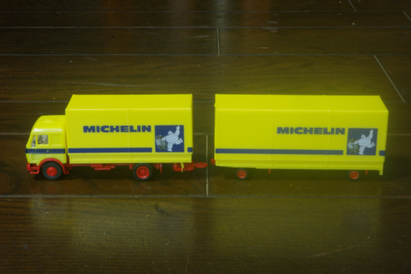 こちらがHerpa MB NG Jumbo trailer truck 2a2a yellowred Michelinです。