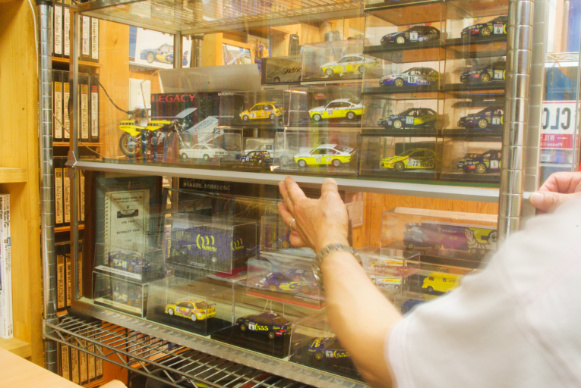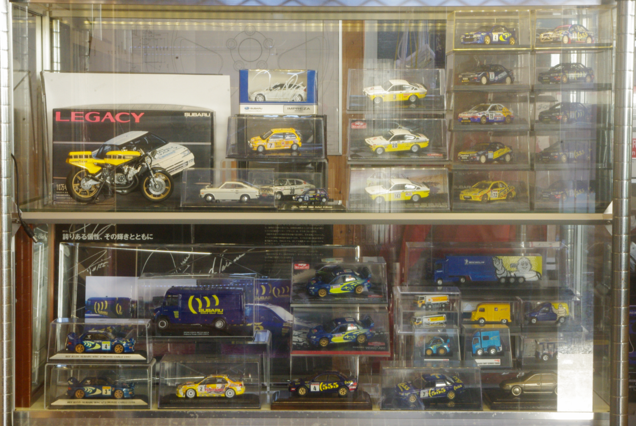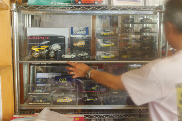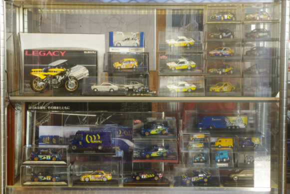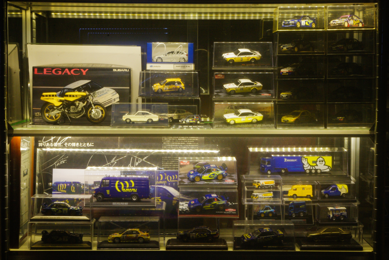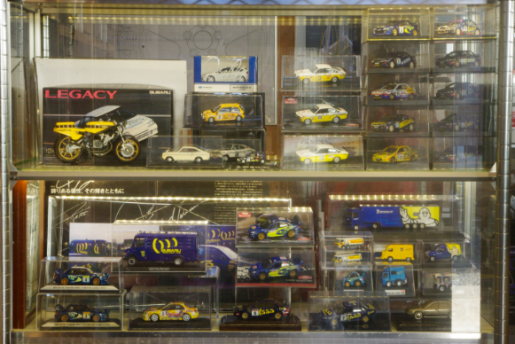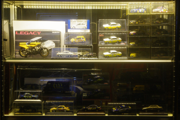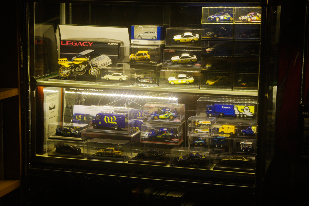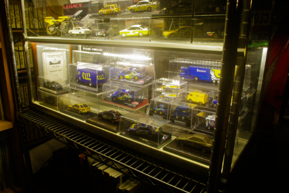 下段の展示ミニカーはかろうじて最前列だけが、少し暗いですが照らされています。