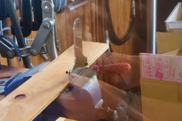 k012メタルブレーキでは作業にややムリがあると判断し、少し頭を使ってハンディタイプのベンダーを使用し作業を実行しました。