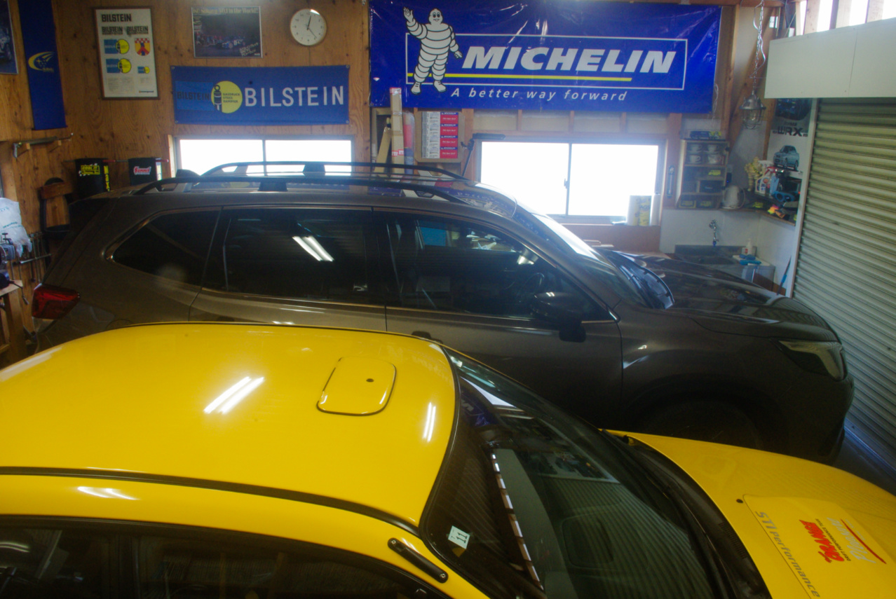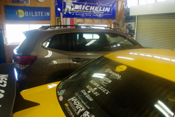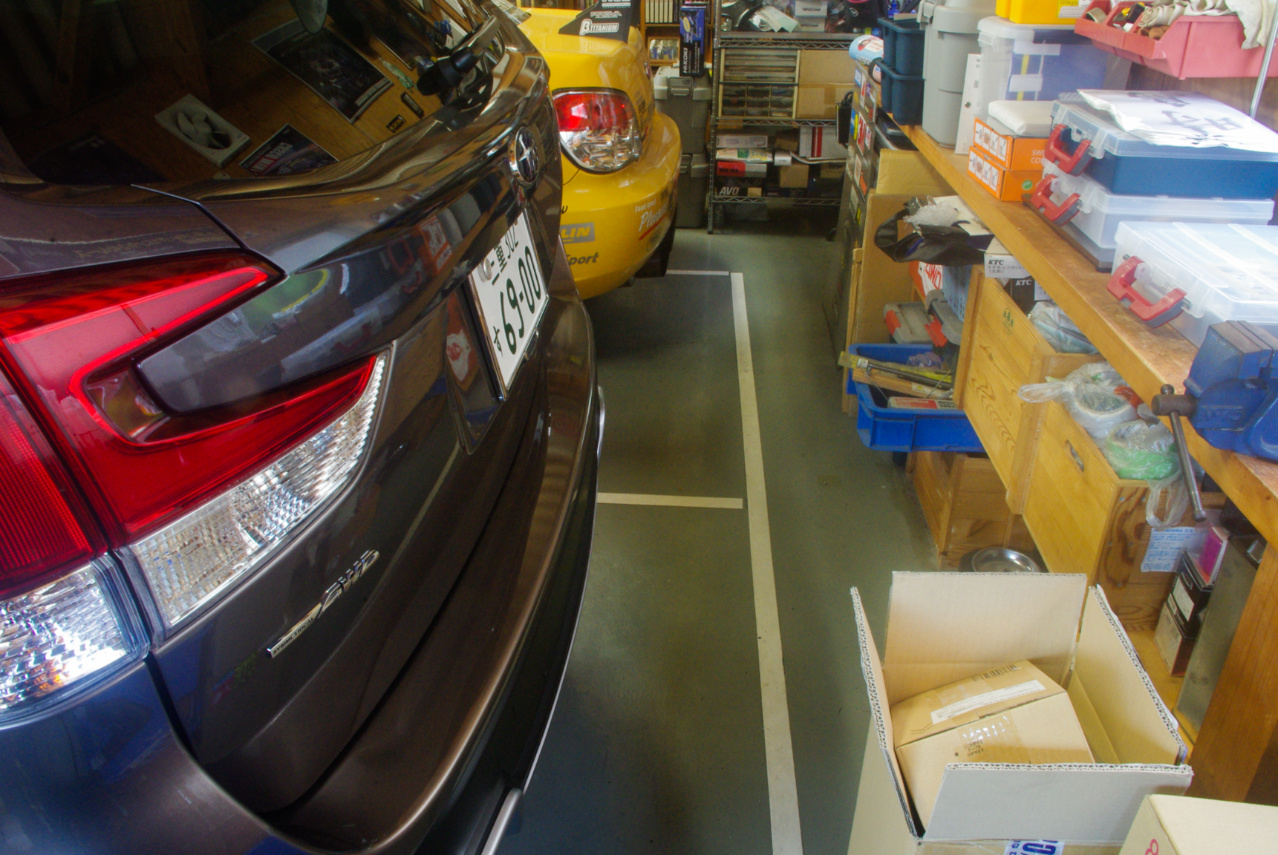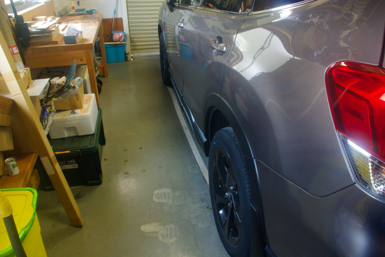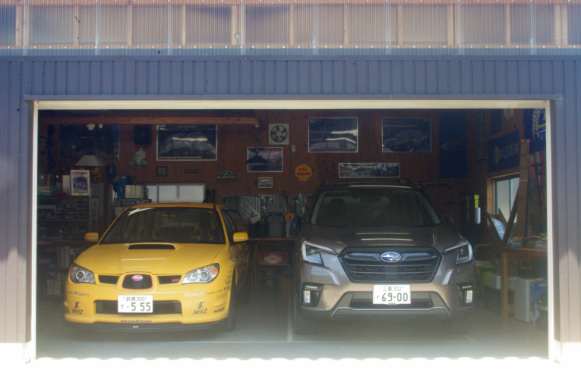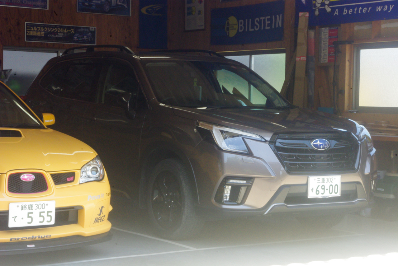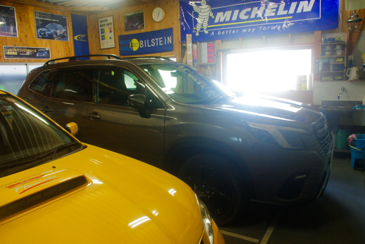 本題の妻のR2は午前11時半に三重スバル鈴鹿店に入庫し、午後3時半過ぎに作業完了の電話連絡がありましたので、代車フォレスターはほんの僅かな時間このガレージに居ただけでした。