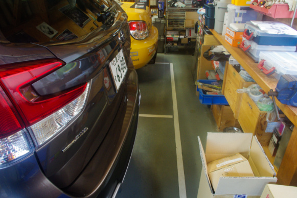 借りたときはデカいなーと思いましたが、こうしてガレージに駐めましたら、見た目ほど大きくはありませんでした。