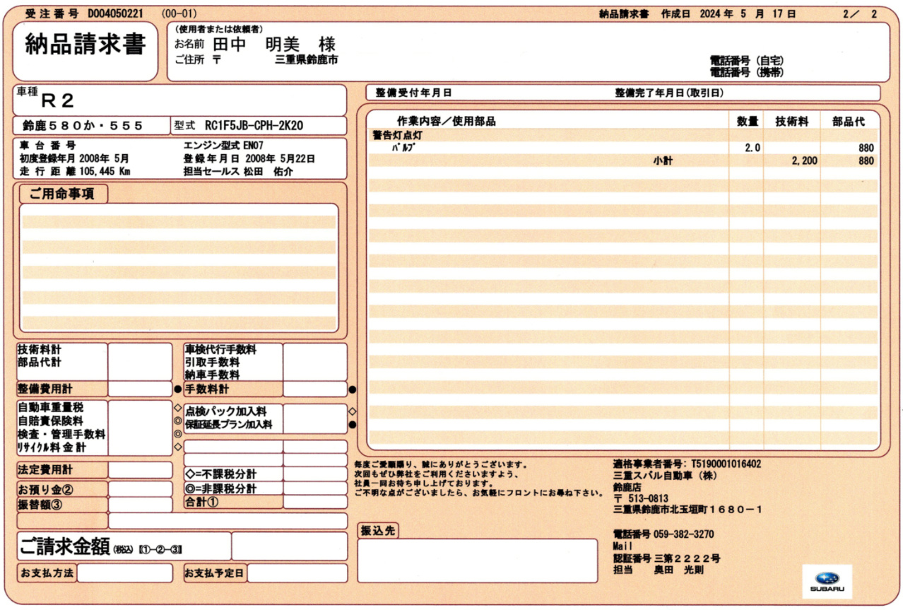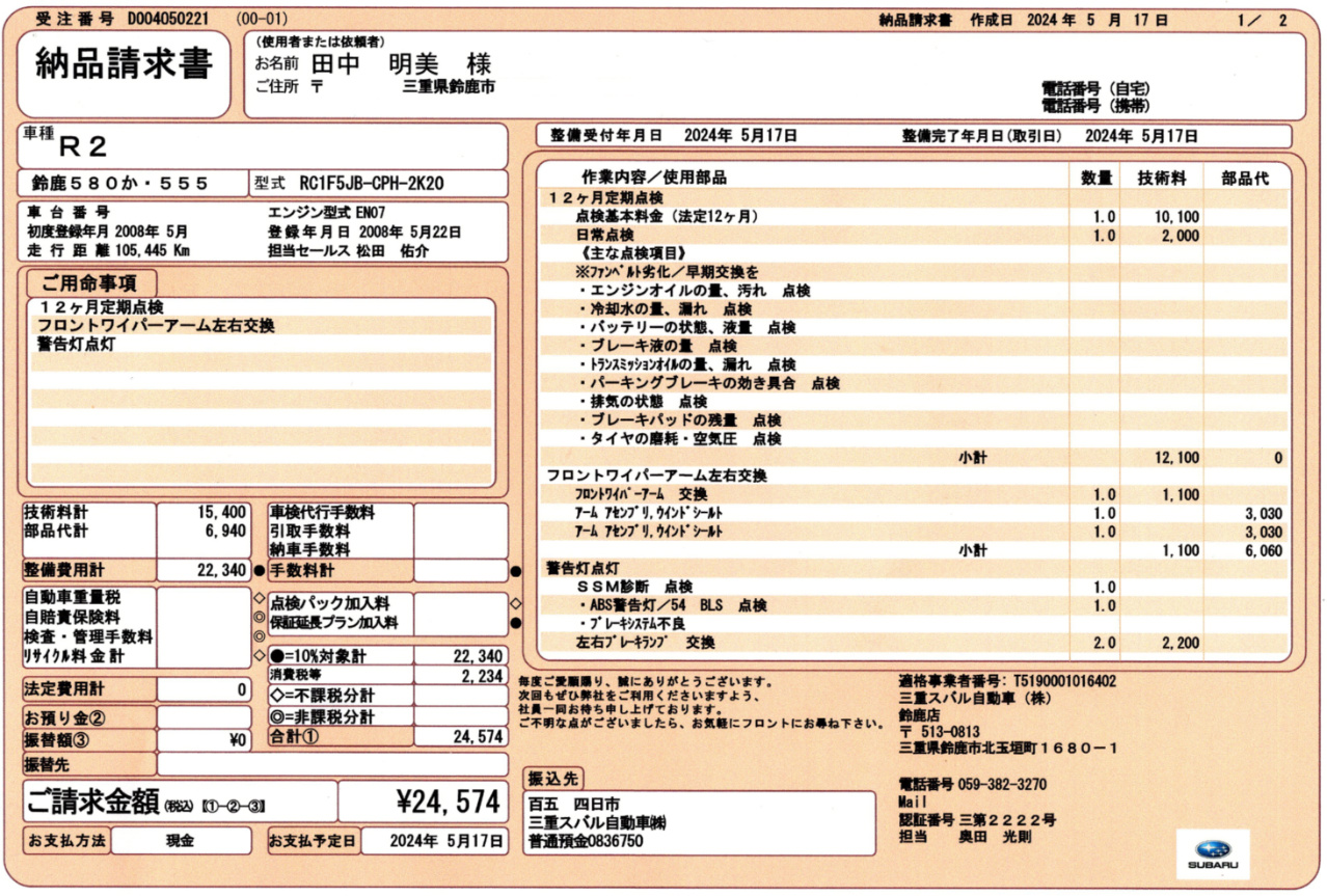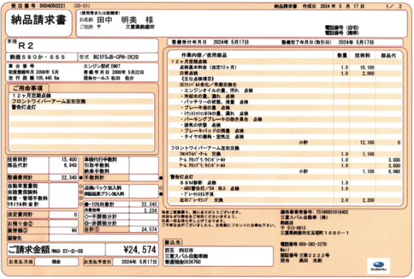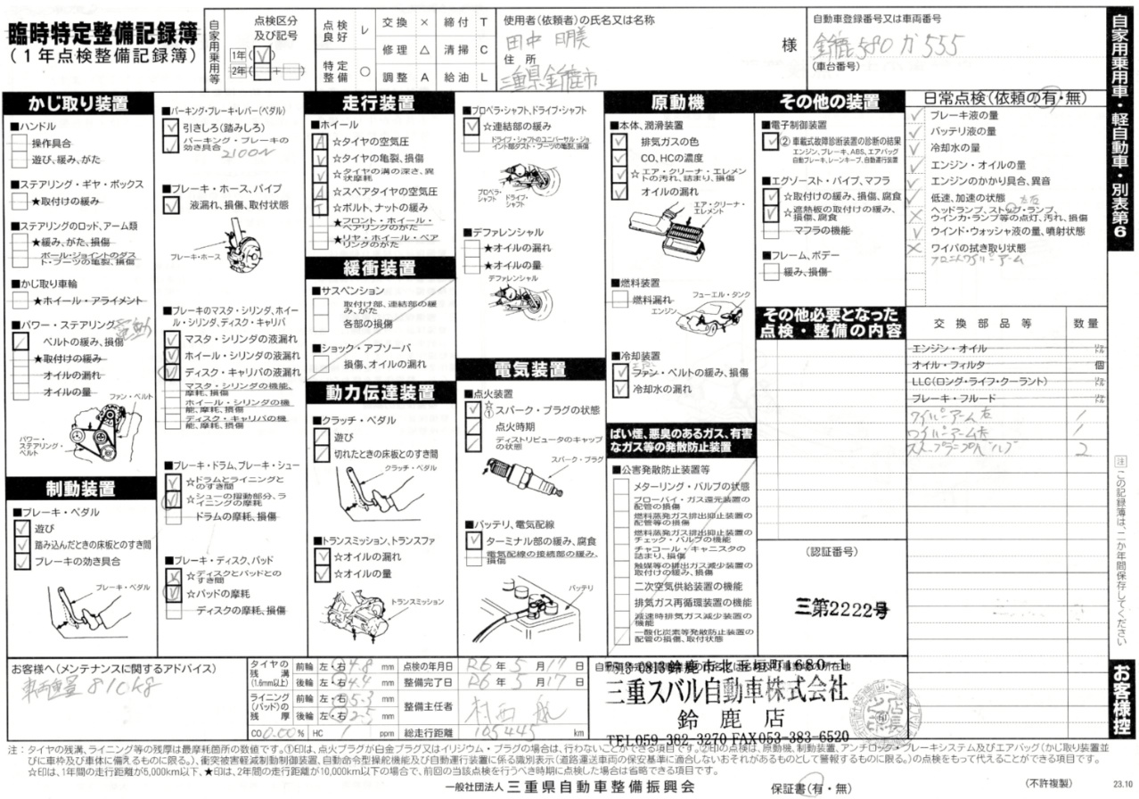 さてR2の12ヶ月点検の詳しい結果は左の納品書をご覧下さい。