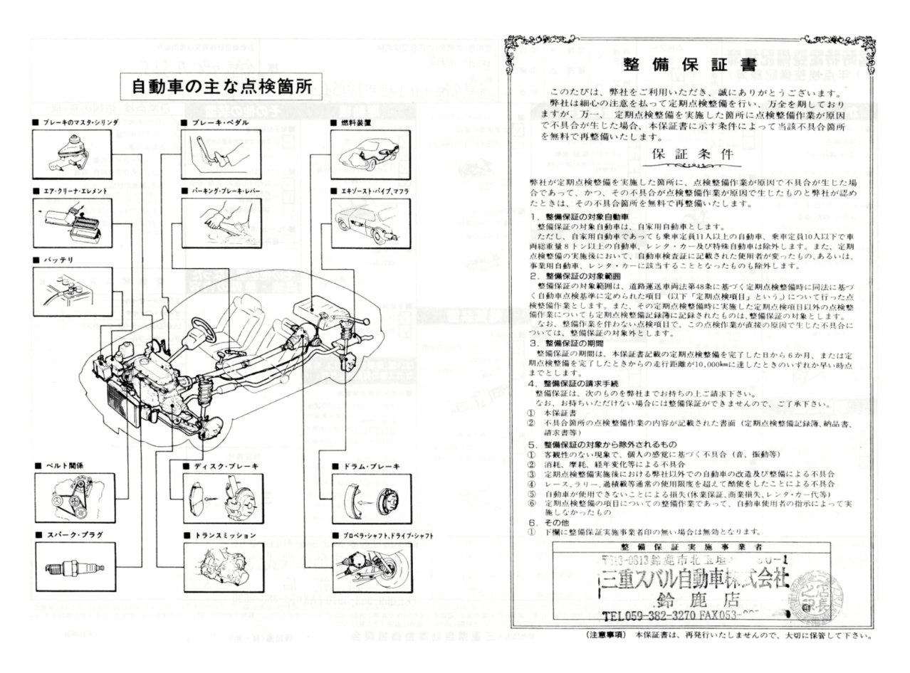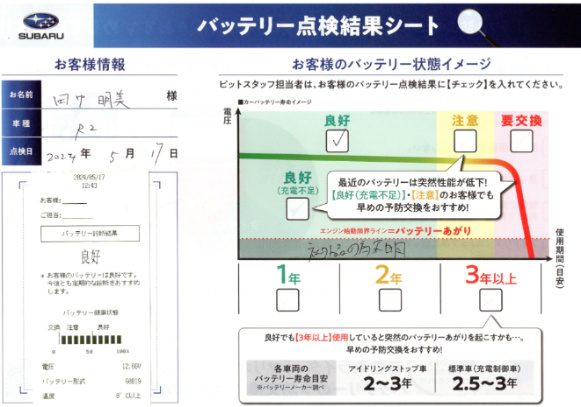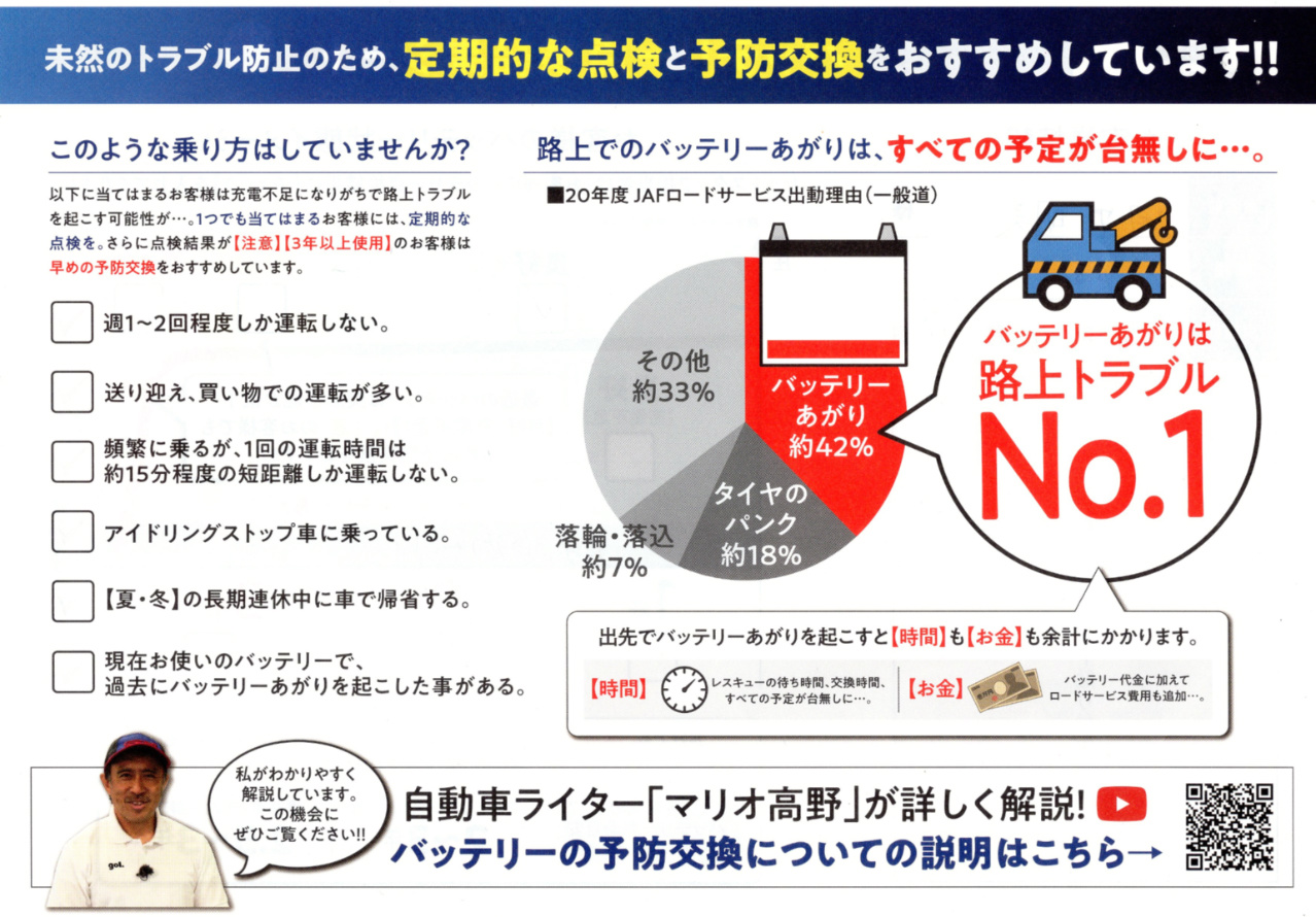 バッテリー点検結果シートの裏はこんなチラシになっていました。