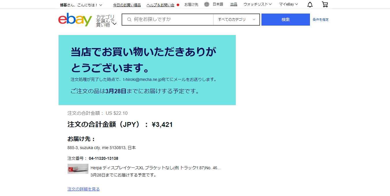 この日到着しました。