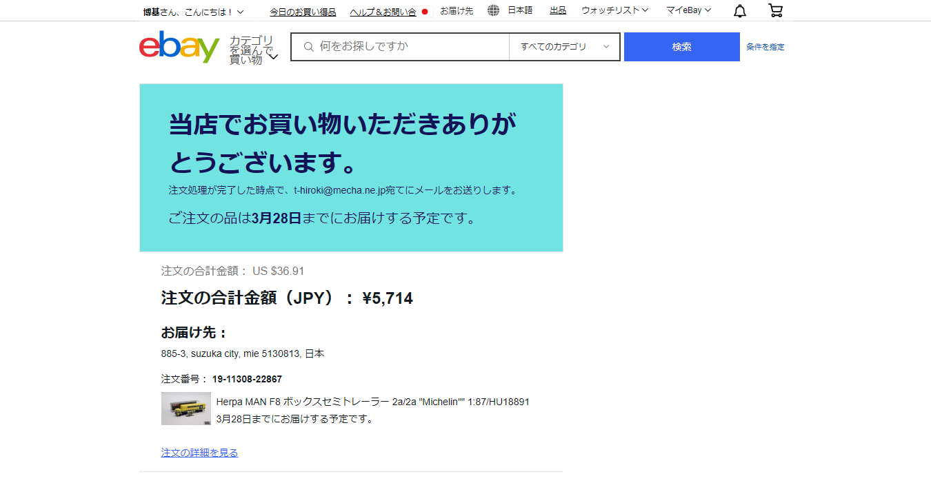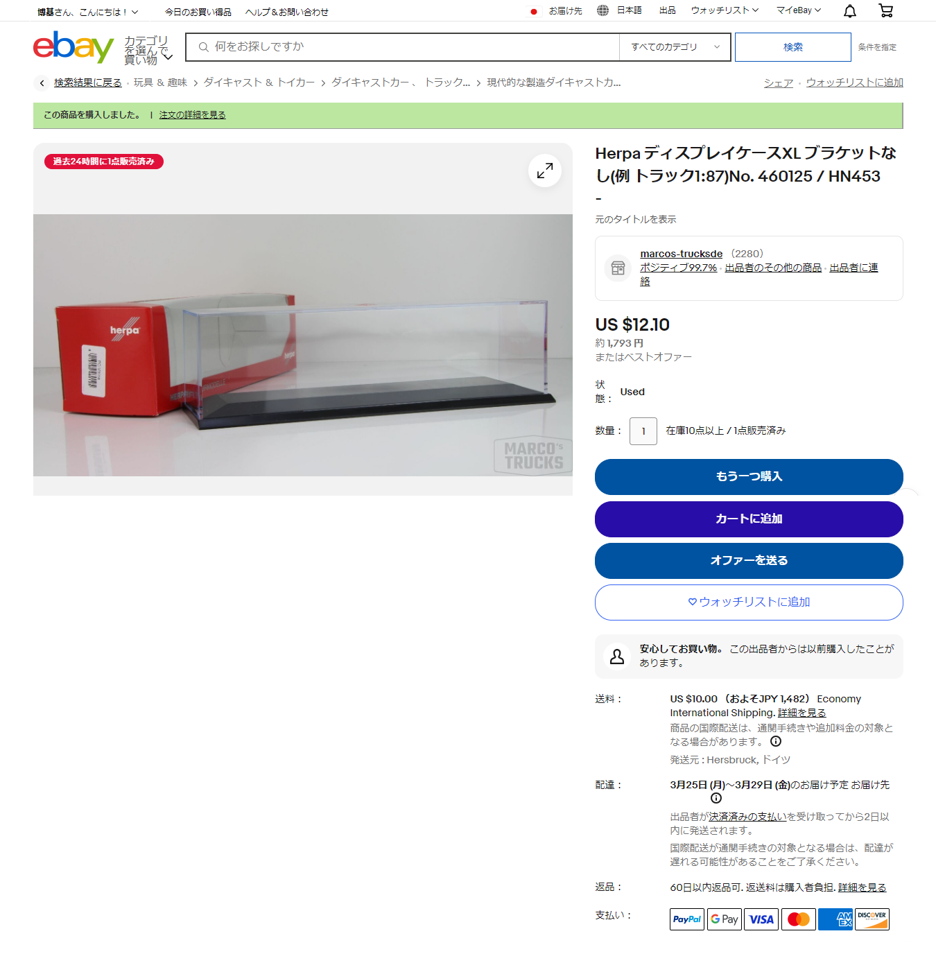 またこれは上記の通り過去に何度も取引している出品者、marcos-trucksde のMarco Reck でしたので、同日に注文すれば発送時に同梱されると判っていたからです。