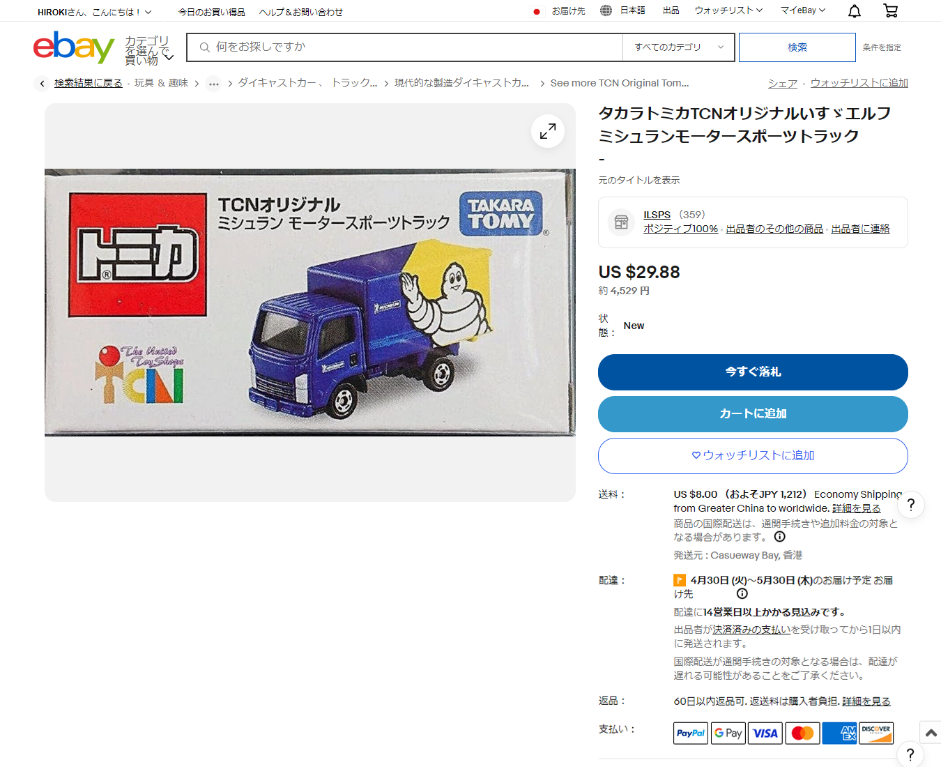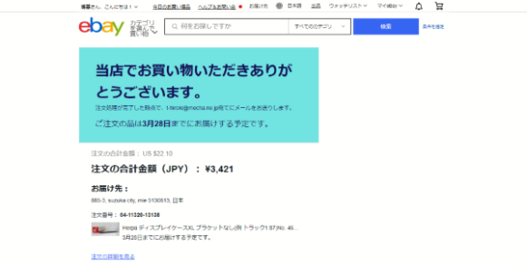 また右のeBay USA における同商品の4月6日付けスクショですが、香港の出品者が日本円で約4,529円(即決価格)という価格を提示していました。