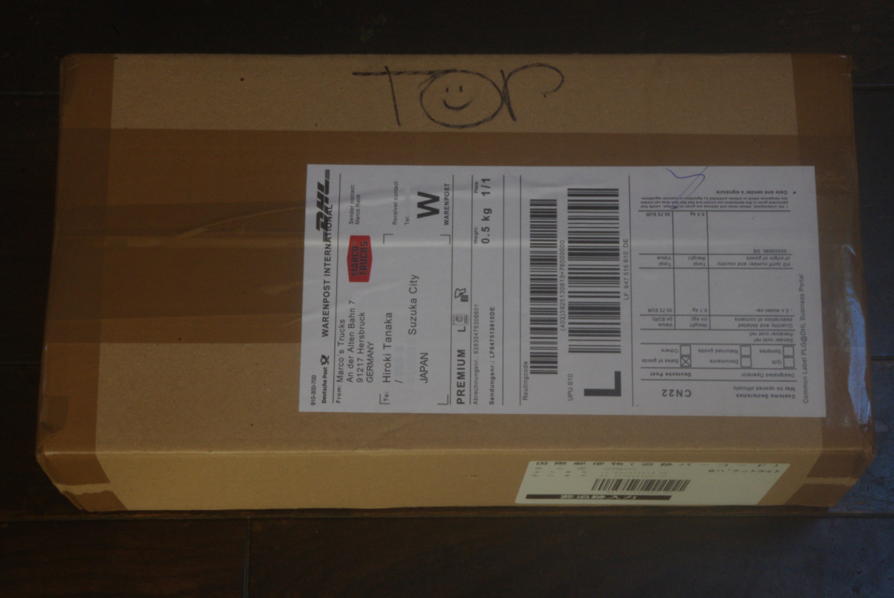 既に見慣れたDHL便の特徴的なTOPサイン入りの小包です。