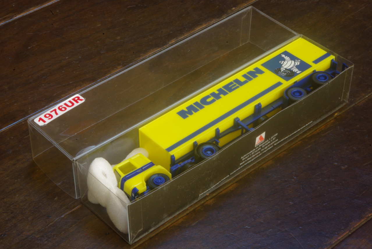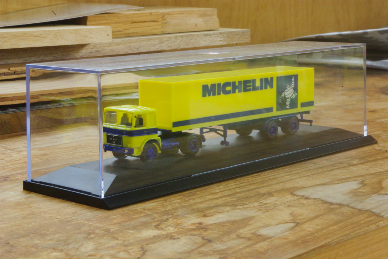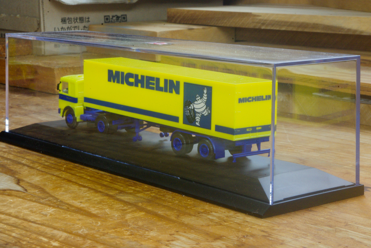 この手前のスチロールケースの商品がHerpa MAN F8 Box semitrailer „Michelin“ 1/87 と思われます。