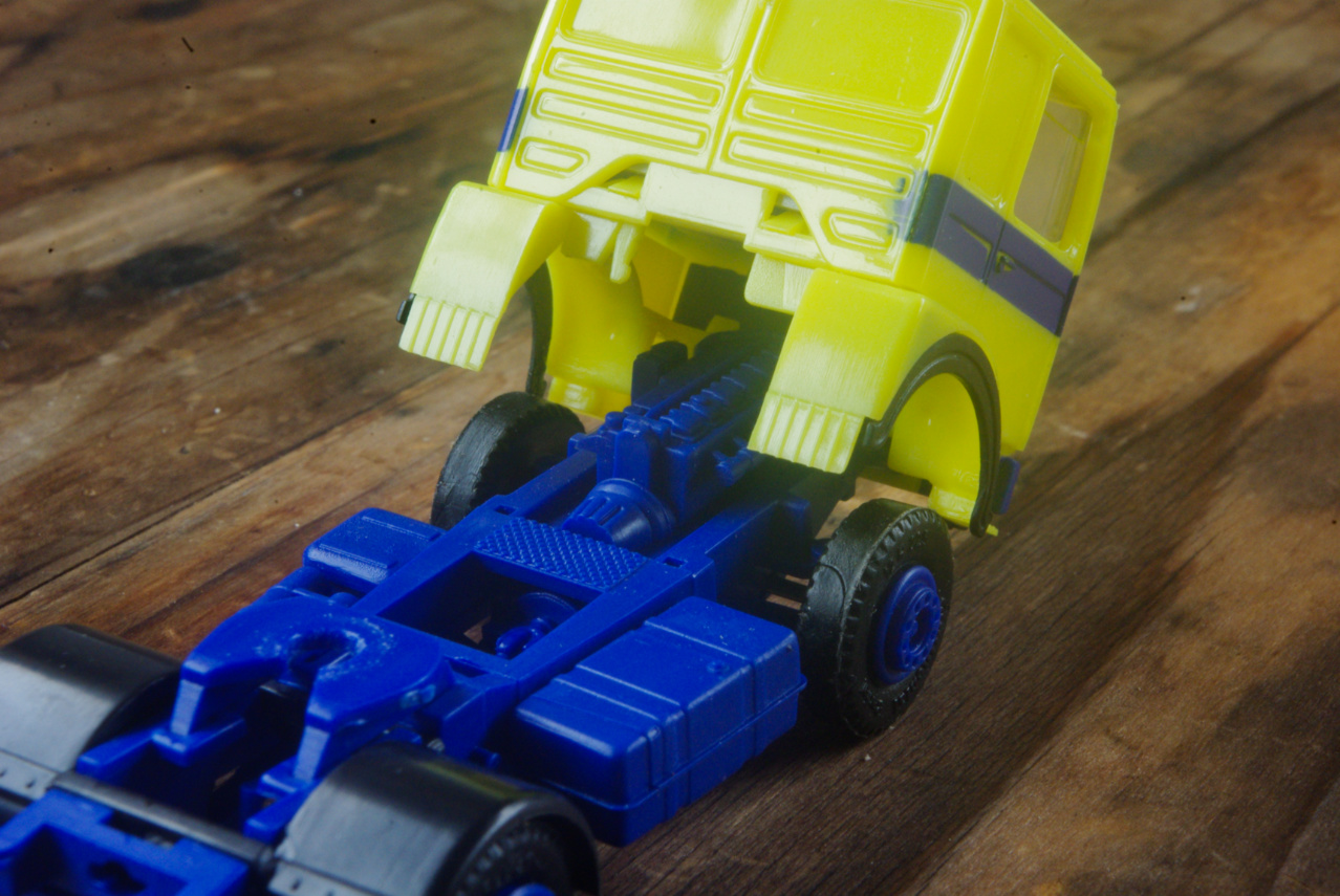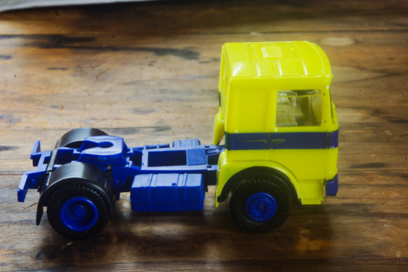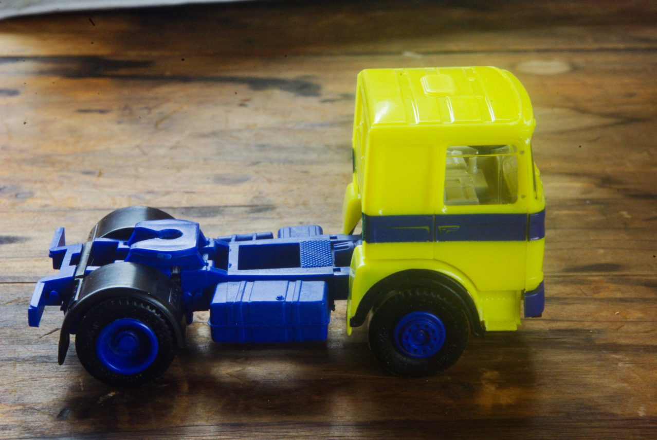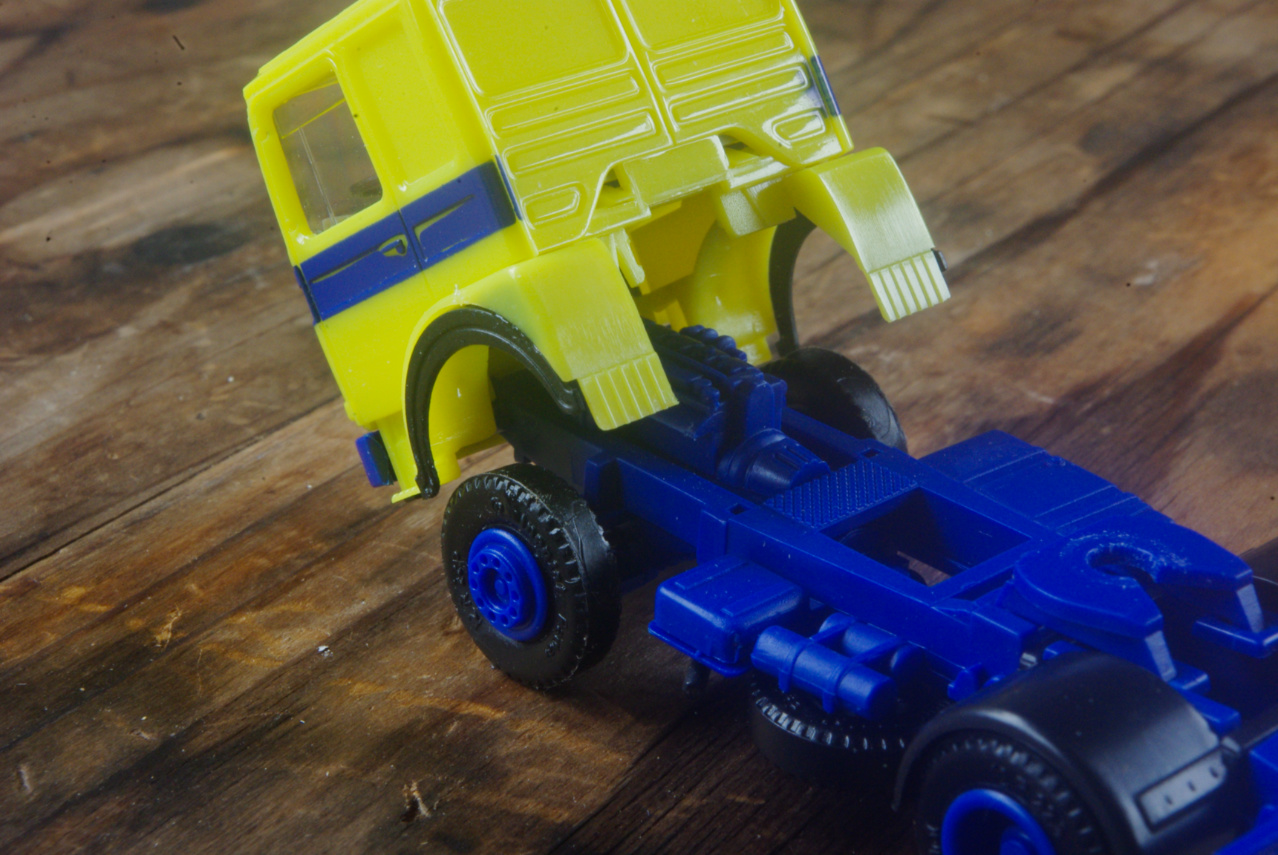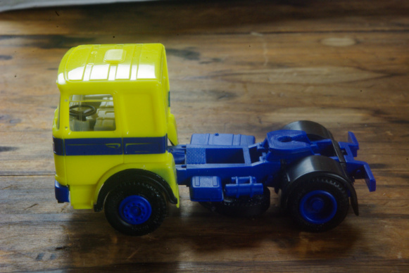では早速紹介するこの画像は、付属パーツのトラクターフロント右フェンダーパーツ(タイヤハウスの縁に黒いホイールアーチが確認出来ます)が装着された画像です。