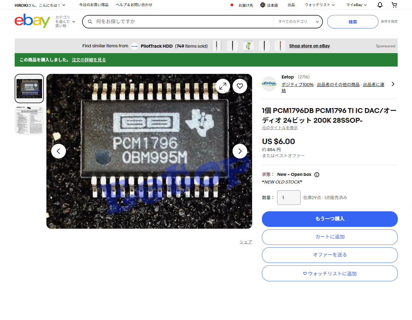 実に他愛の無い話ですが、やはりHiFiBerry DAC2 HD の心臓部であるこのICチップは、単体でも是非とも手元に置いておきたくなったという訳です。笑