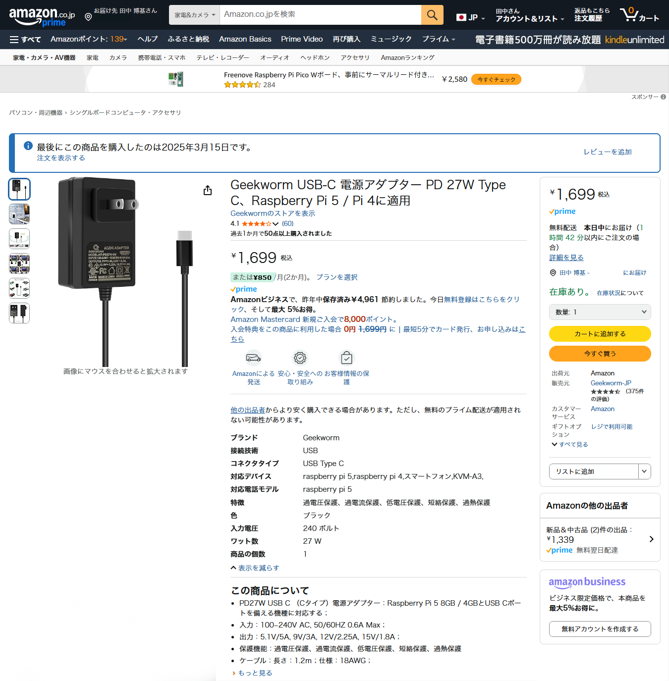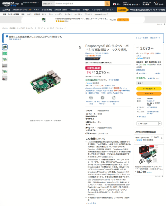 案の定注文した翌日のこの日に、左の画像の通りPi5 8GBが届きました。