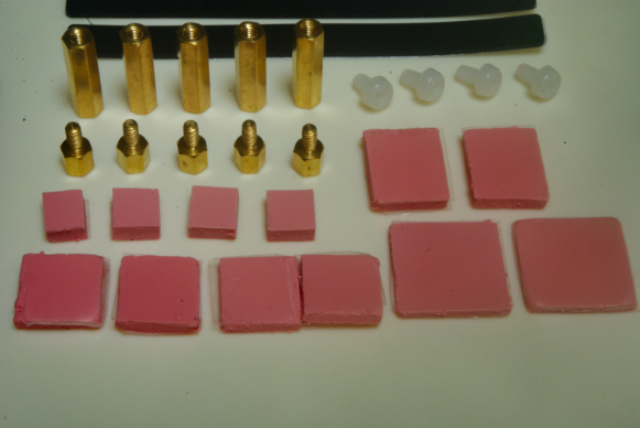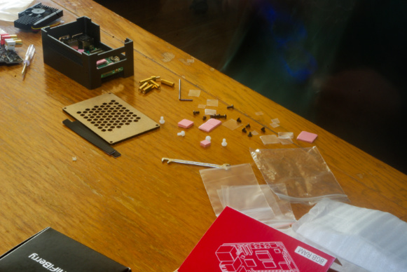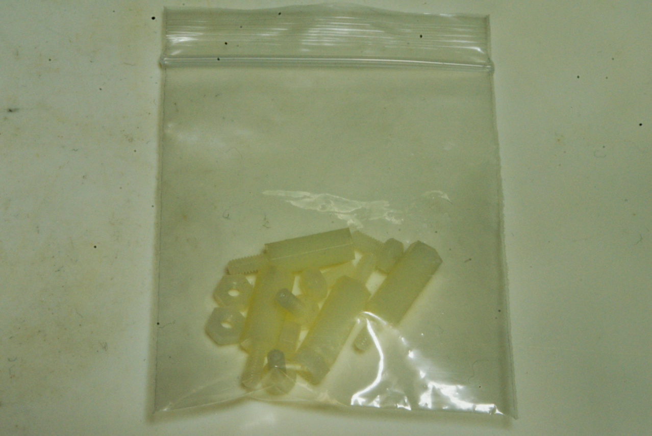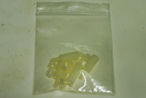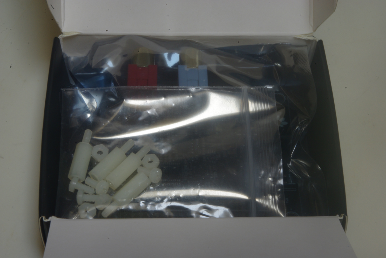 購入したHiFiBerry DAC2 HDと付属のRaspBerry Pi取り付け用樹脂製ネジ一式が其れ其れのビニールパッケージの中に透けて見えています。