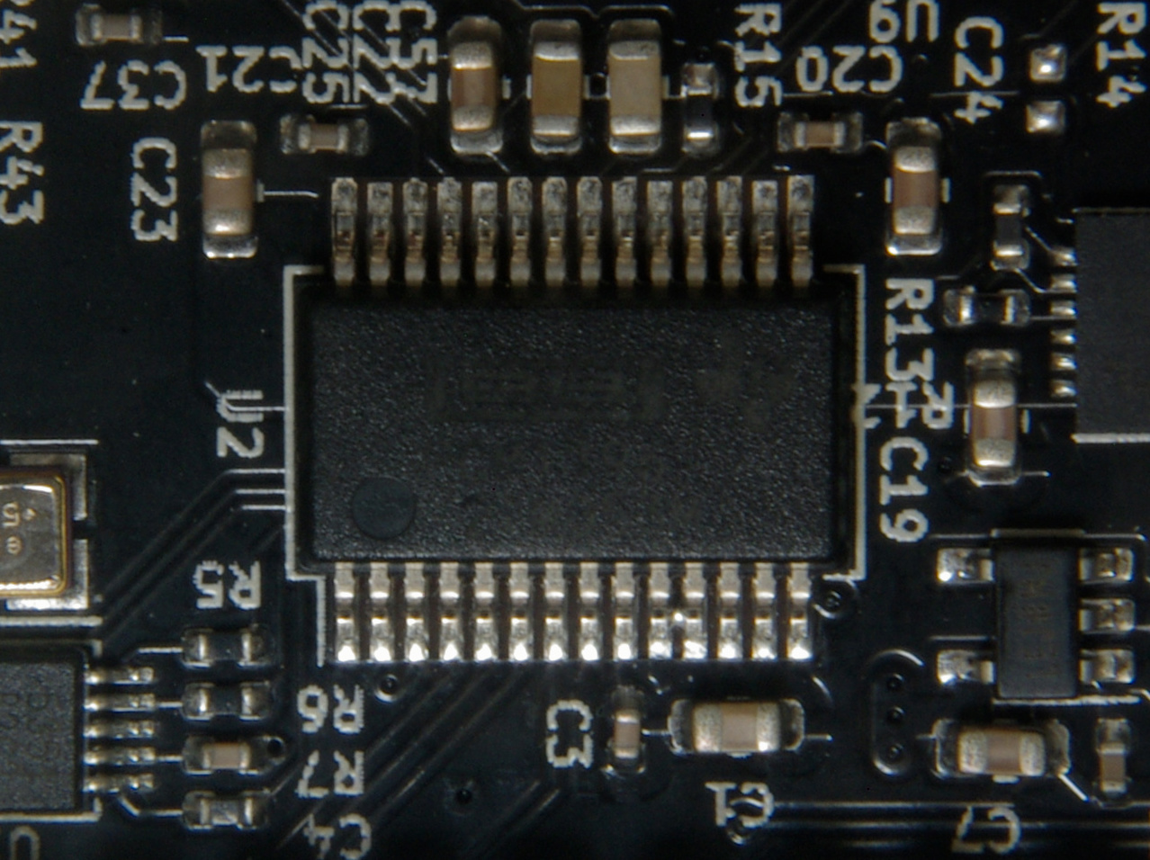 上の画像はたぶん光線の反射角度の関係からか、チップにプリントされた文字がほとんど写っておりません。