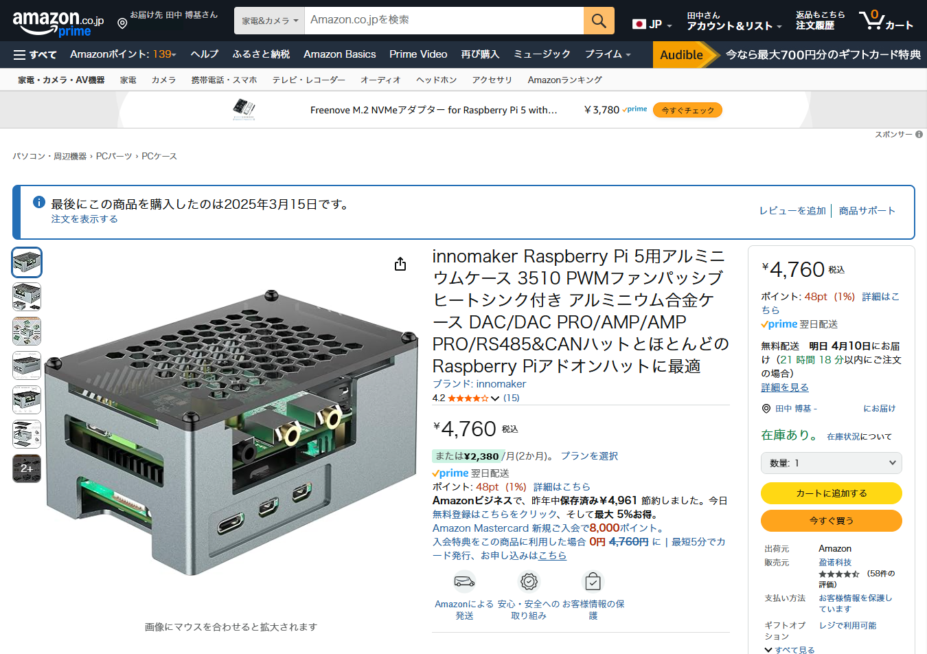 但し予定していたPi 4より価格が高いということで、今回初めて2分割払いを選択しました。笑