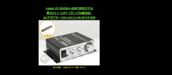 このスクショの出品はご覧の通りアールエーアール鈴鹿のオーディオライフ 7で紹介してきました、Lepai LP-2020A+ NFJ Edition である可能性が非常に高いものです。