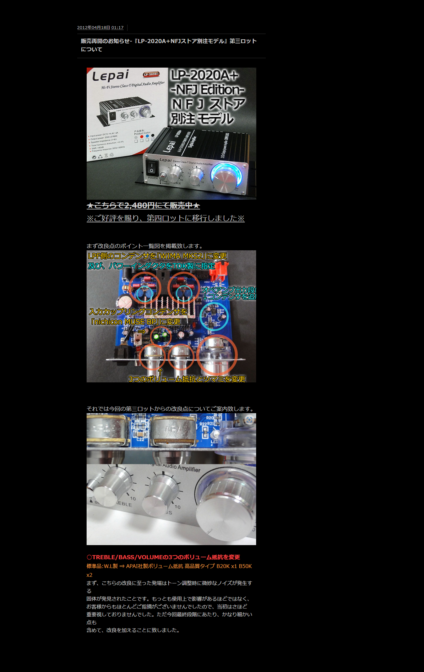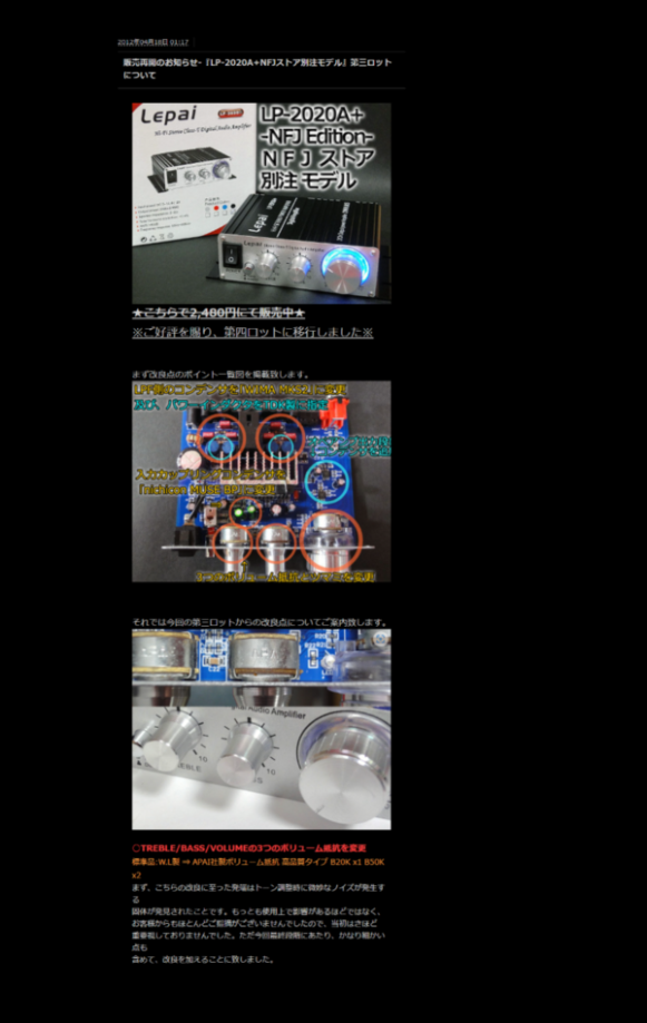 因みにこのLP-V3SLepy LP-2020A+ の兼用パッケージが採用されたのは、NFJ公式ブログの確かな情報(右スクショ画像及び関係記事)によれば、LP-2020A+ @NFJ ストア 別注モデル 第6ロットからとなっていますので、このNFJ Edition は間違いなく旧モデルとしては最後となる第6ロットであることが判りました。