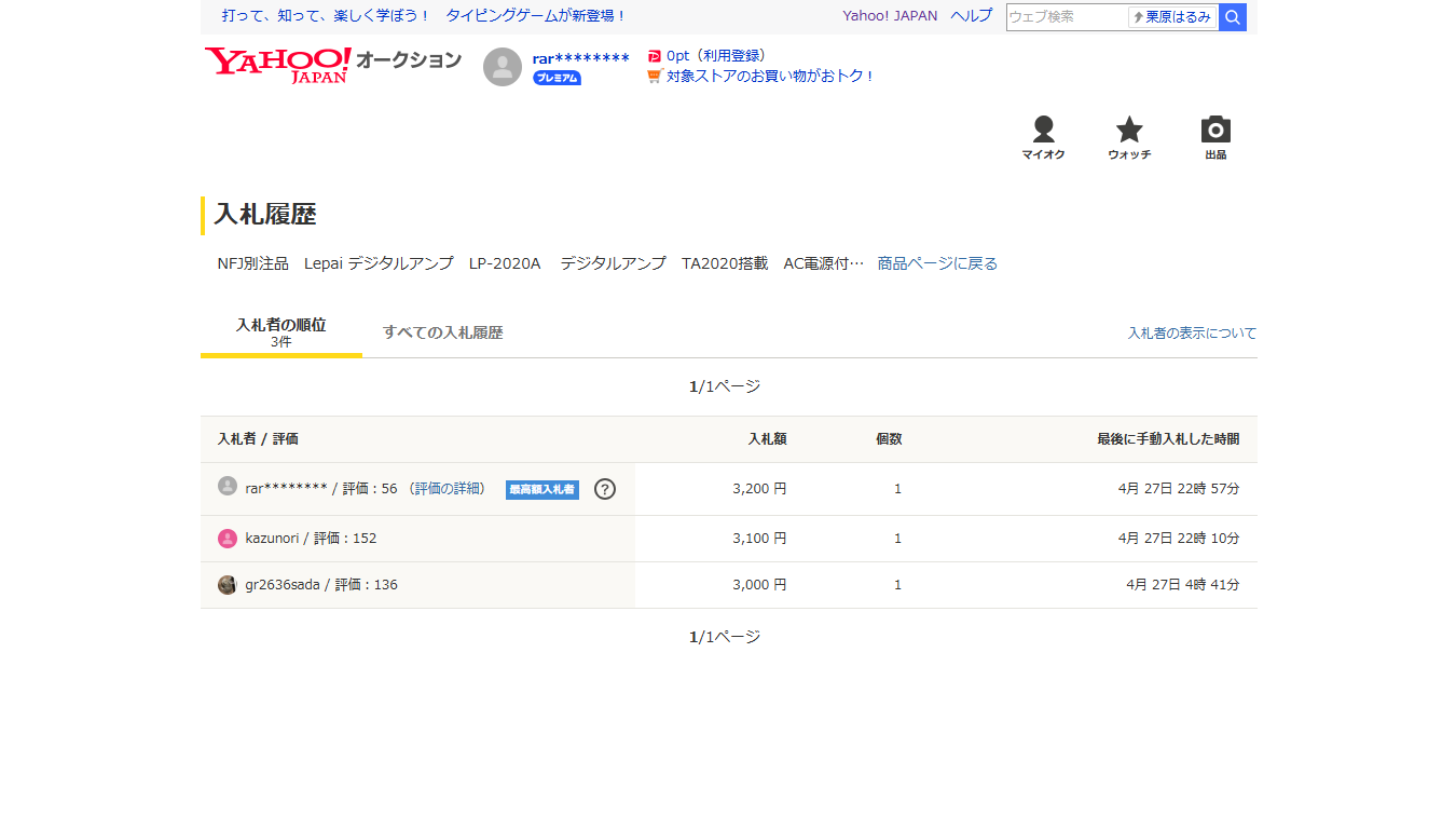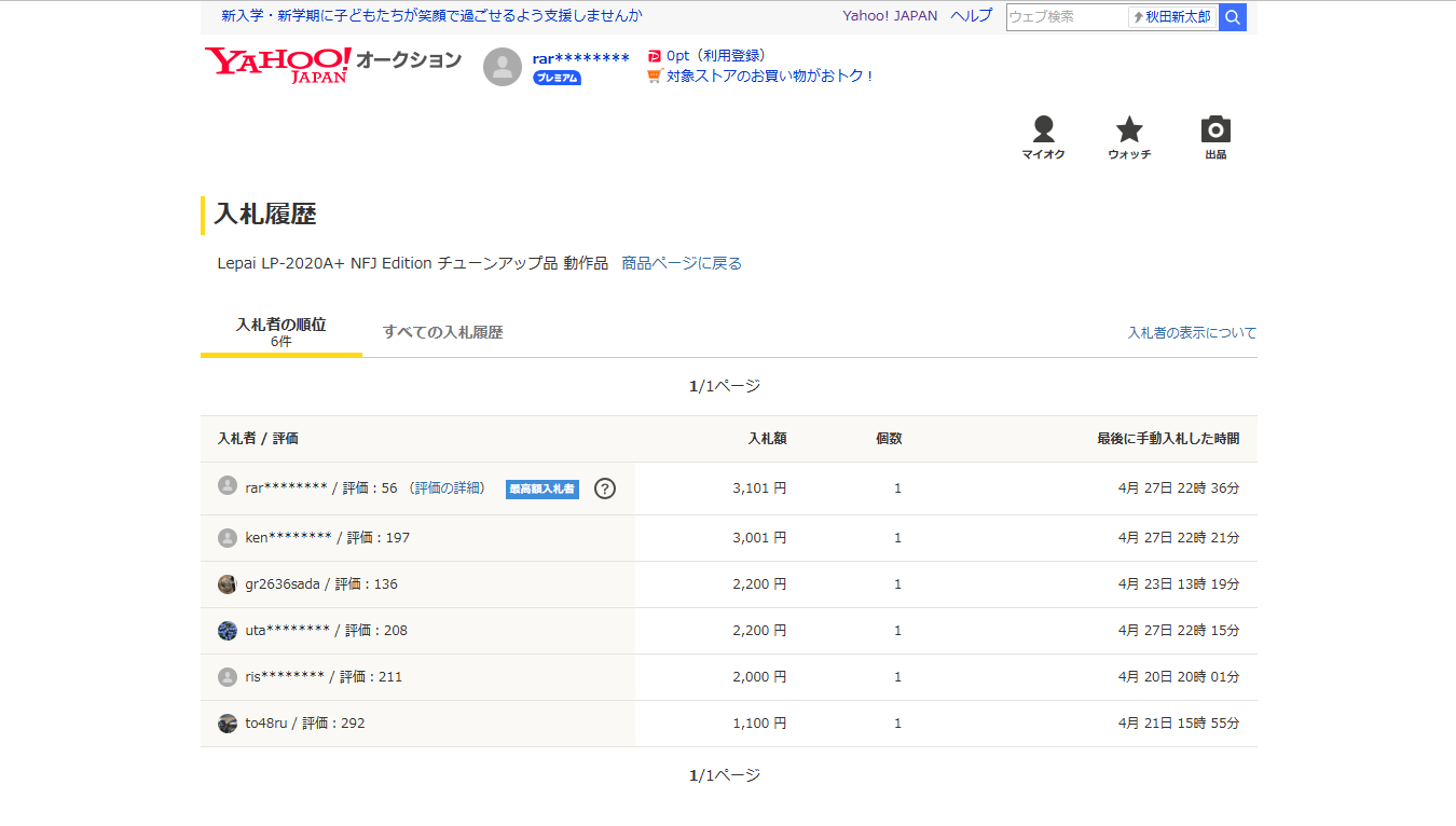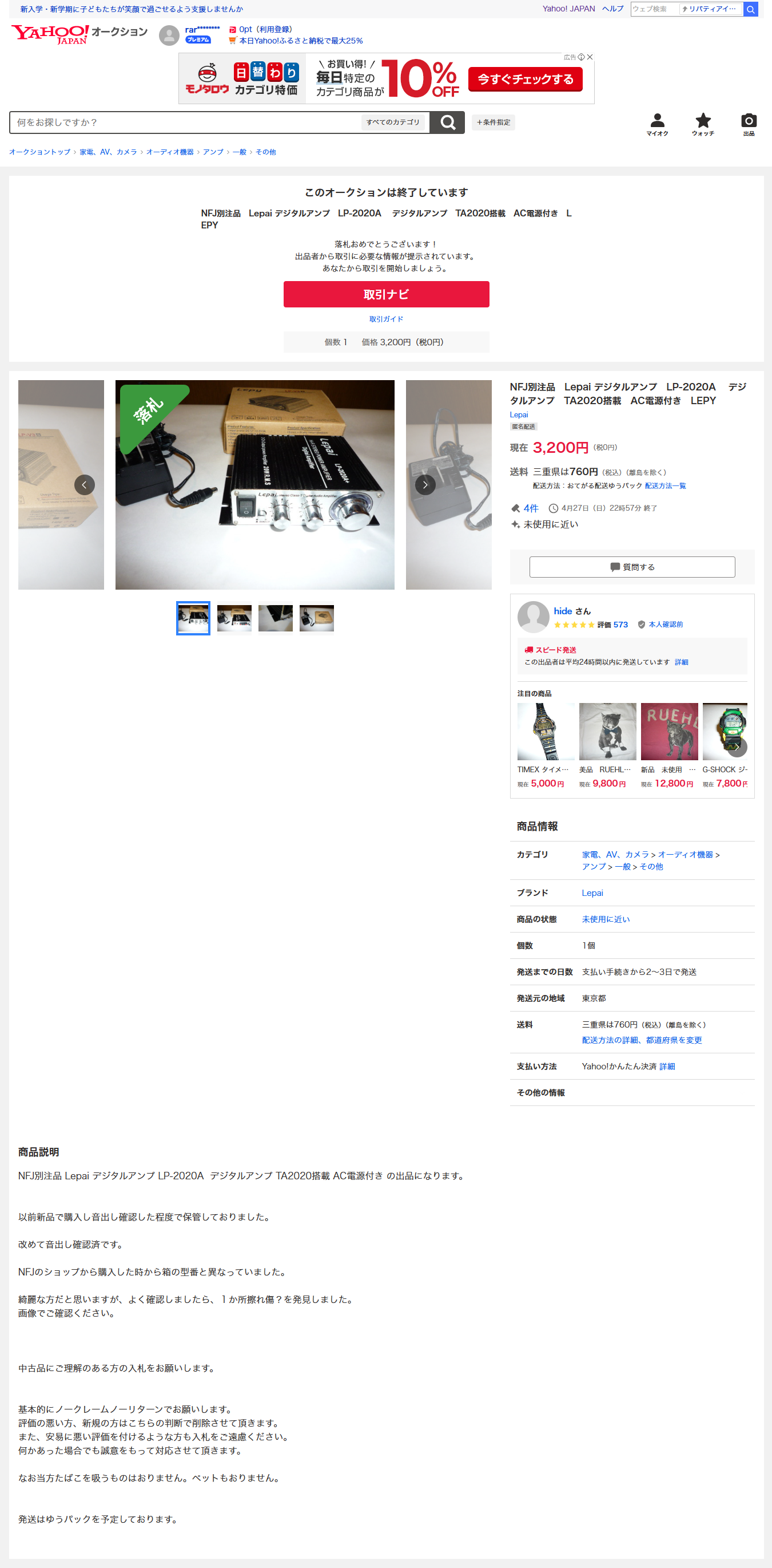 もっともLepai LP-2020A+ NFJ Edition は人気があり、最後まで気が抜けない入札には違いありませんでした。