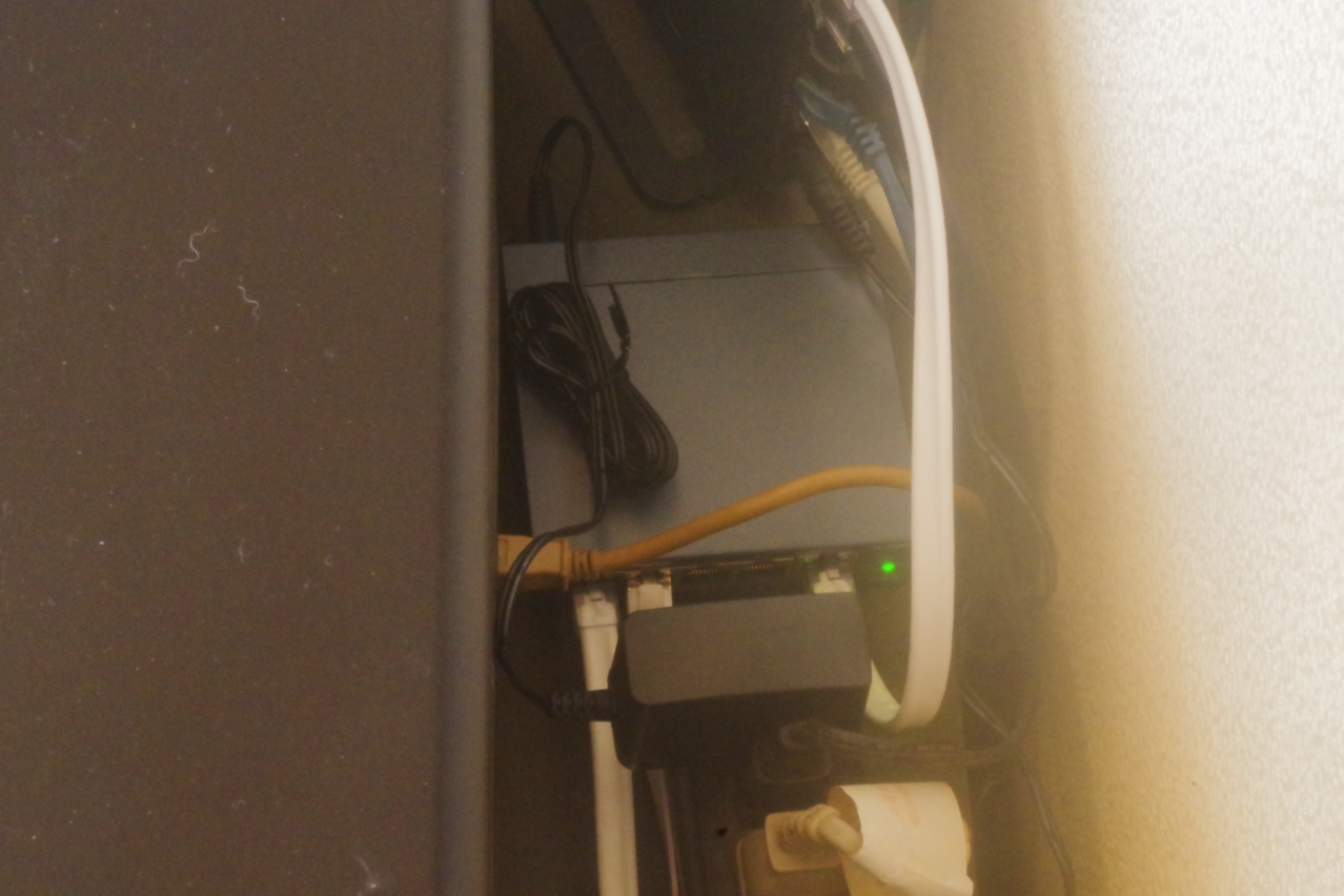 この度のガレージと自宅を繋いだLANケーブル(2本/両方60m)の出力元ですが、このルーターの傍らにTP-Link Multi-Port LAN Switching Hub を設置しました。