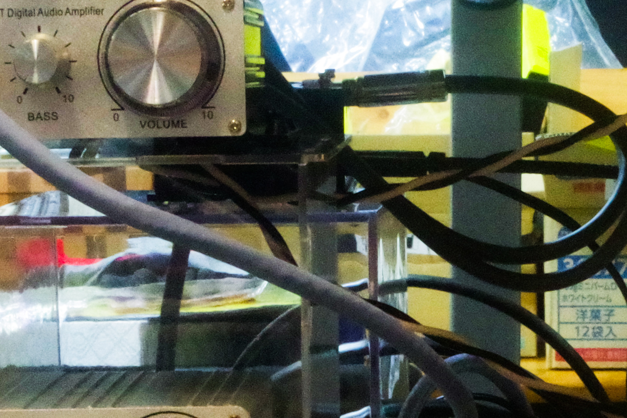 Lepai LP-2020A+ 後期武漢標準品パワーアンプを投入したために、2系統になったアンプ・スピーカーに対応するため、プレーヤー側の一つしか無い