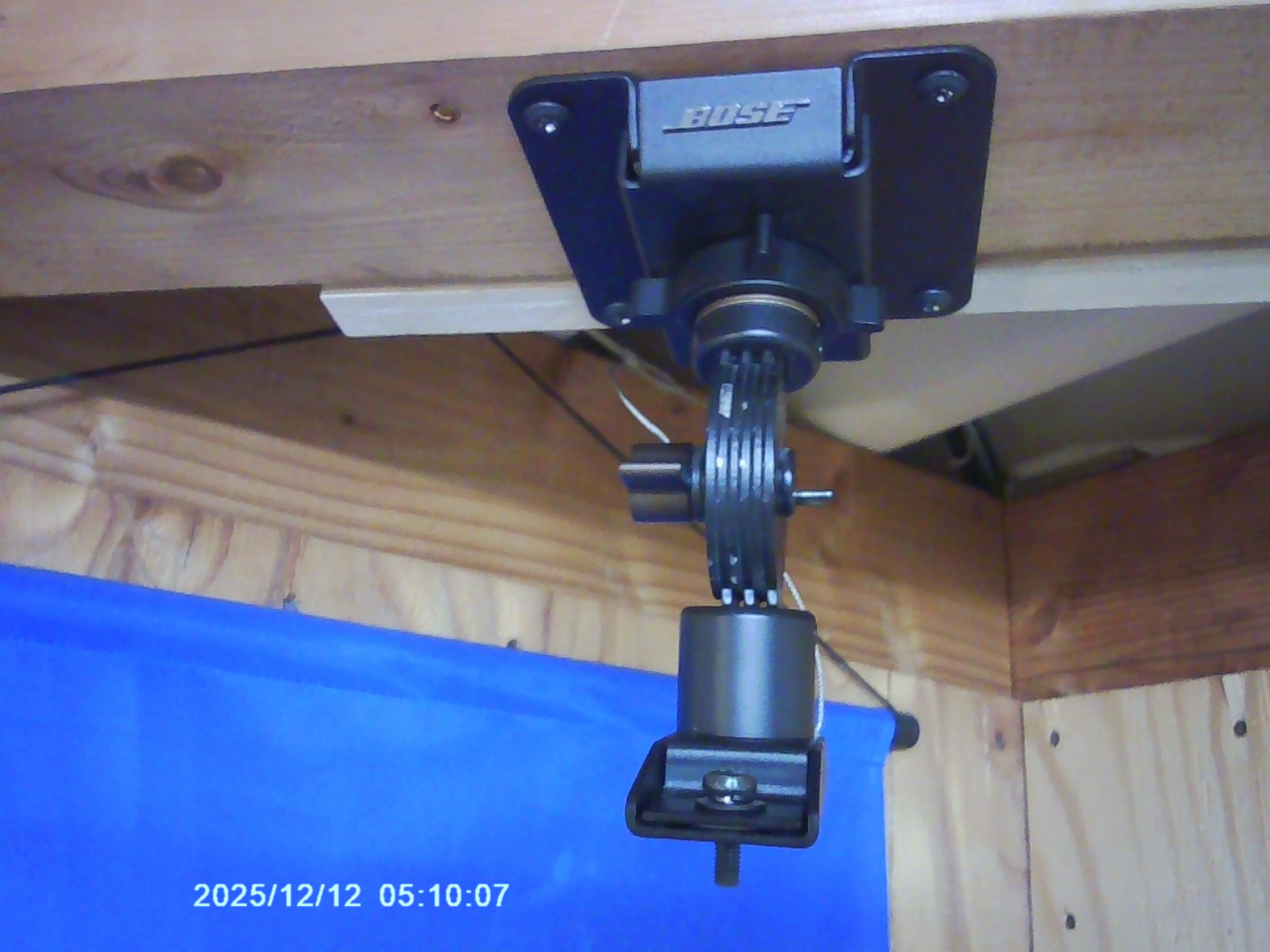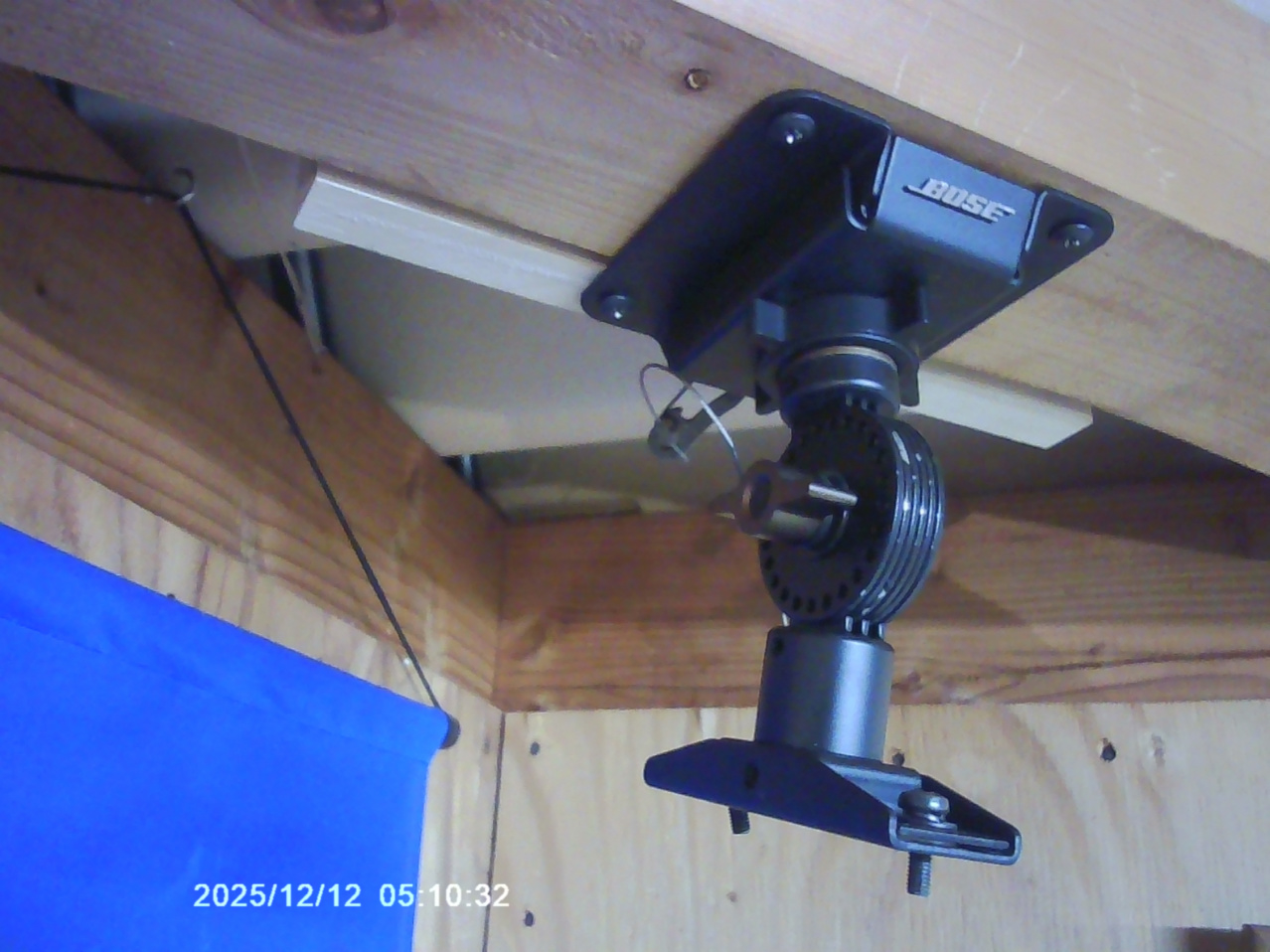 さてこれで左スピーカー本体がその後ろに見えるポスターパネルに接触していたために、ブラケットの固定位置を変更して設置し直して作業が完了しました。