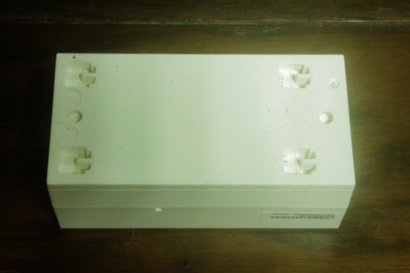 3箇所に爪のような造形が確認出来ますが、これを壁に固定した台座パネルの3箇所の窪みに嵌め込んで、時計回りに本体をズラせばピタリと台座に固定される(台座と一体になる)構造になっています。