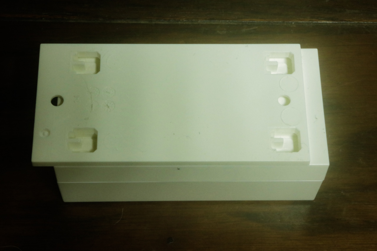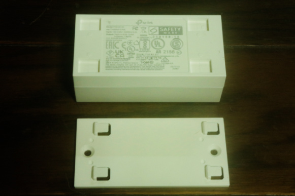 このTP‑LinkTL-POE2412G(UN) 24V Passive PoE AdapterもまたTP‑Link EAP110 Access Pointと同様に本体と台座パネルが一体式になっていて、まず先に樹脂製の台座だけ壁等にネジで固定してから、本体を台座のフックに引っ掛けて固定するようになっていました。