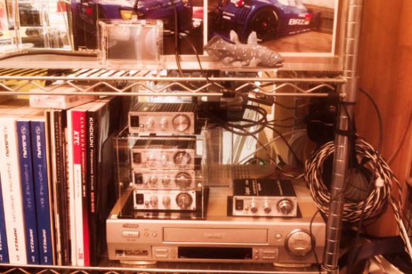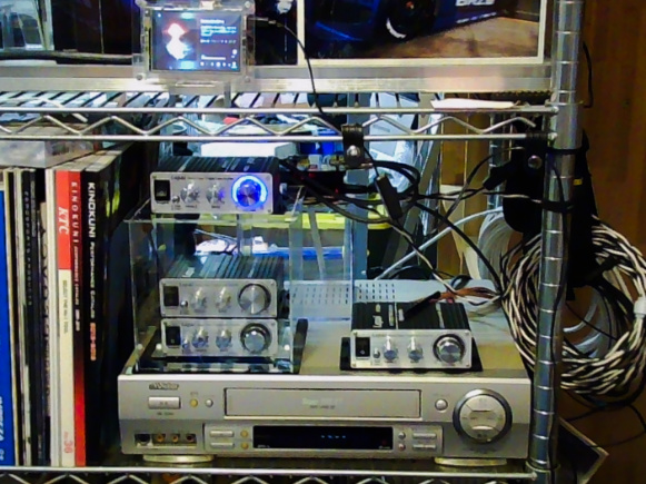 そしてその向かって右上には、VHSビデオ音声再生専用のパワーアンプとして、Lepai LP-2020A+ 新型武漢標準モデルが見えます (因みにこのアンプは一番最初にヤフオクで落札入手したLepai LP-2020A+)。
