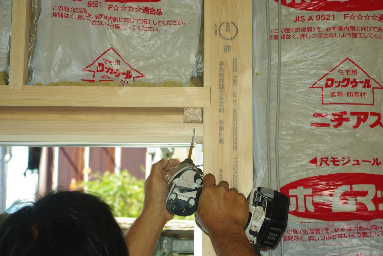 内壁のコンパネの胴縁にもなるので、様々なサイズの部材を駆使して、しっかりした造作を行います。