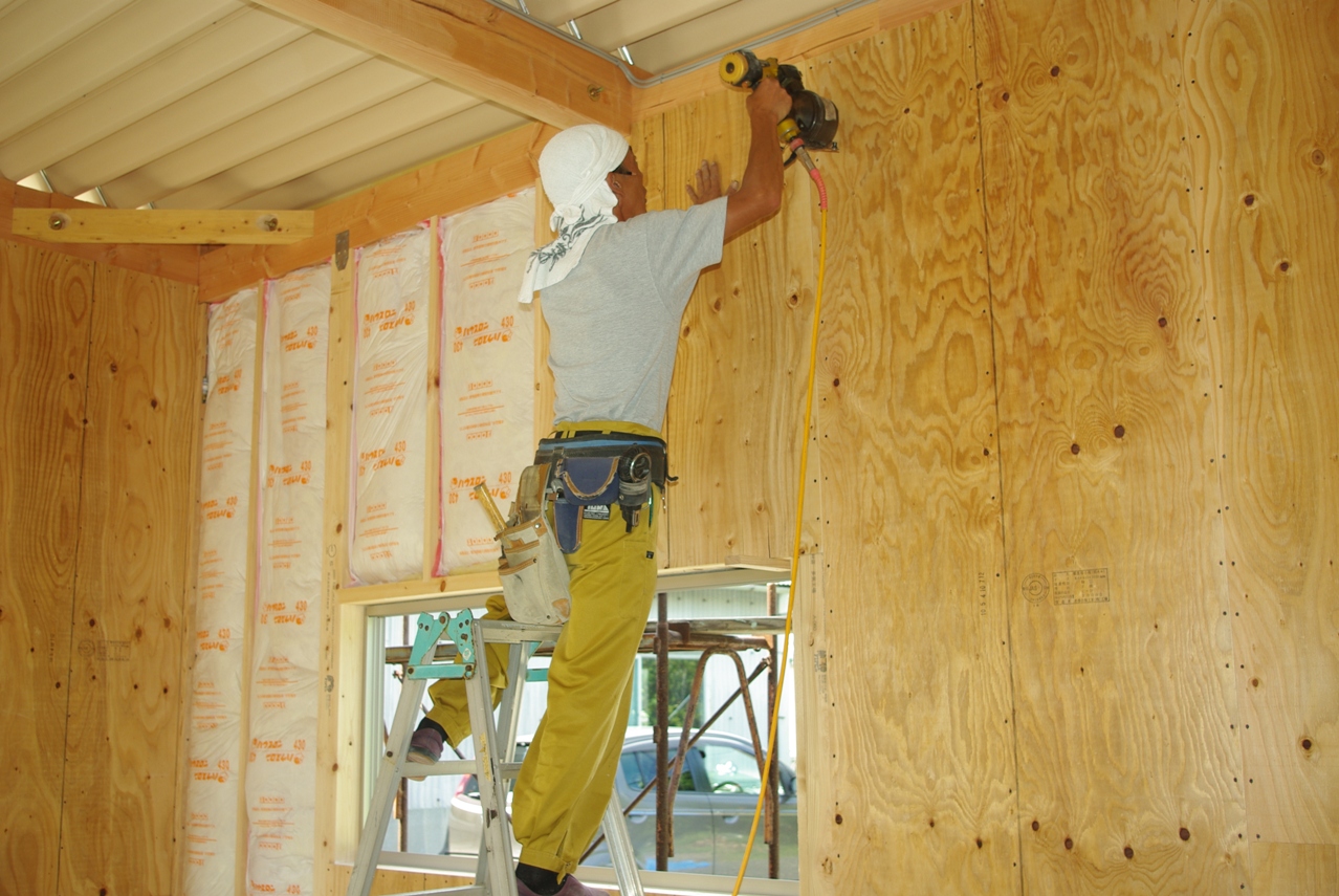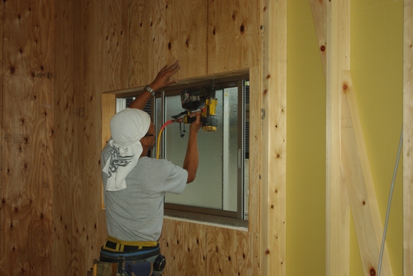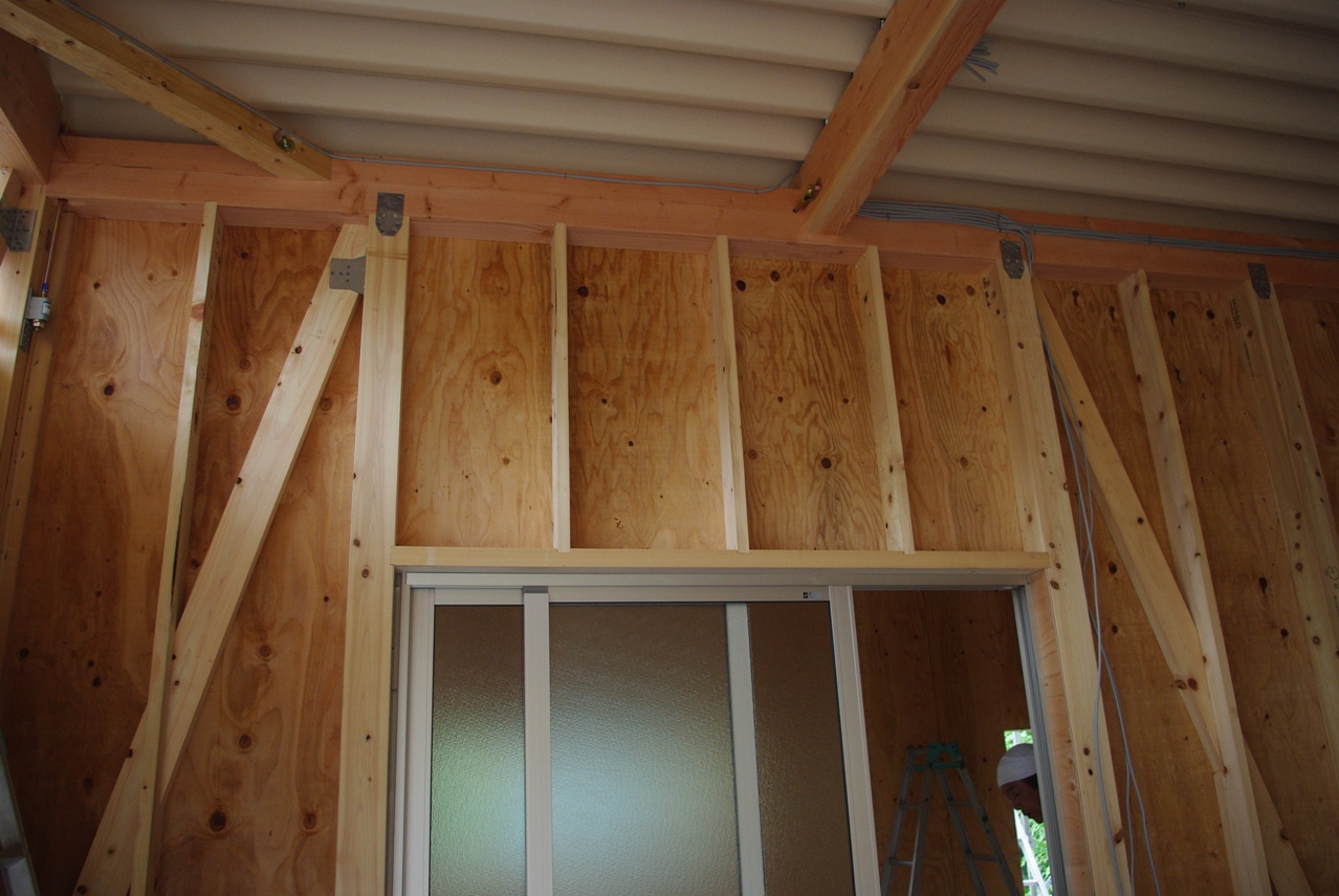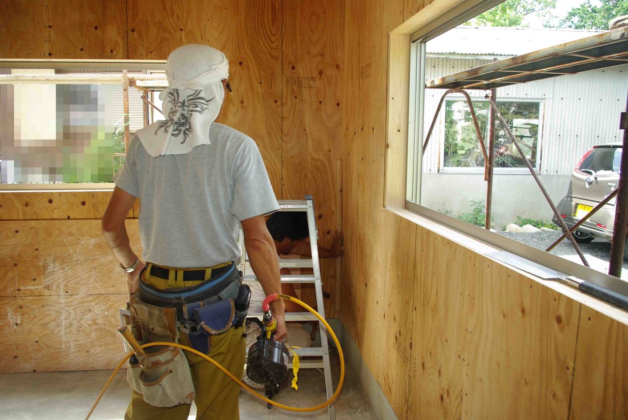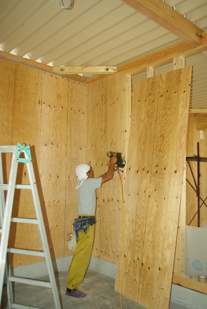 コンパネは構造材としても、壁などの強度を出すために用いられるので、これだけの量のコンパネを使用すれば、建物としての強度は相当高くなっていると思います。