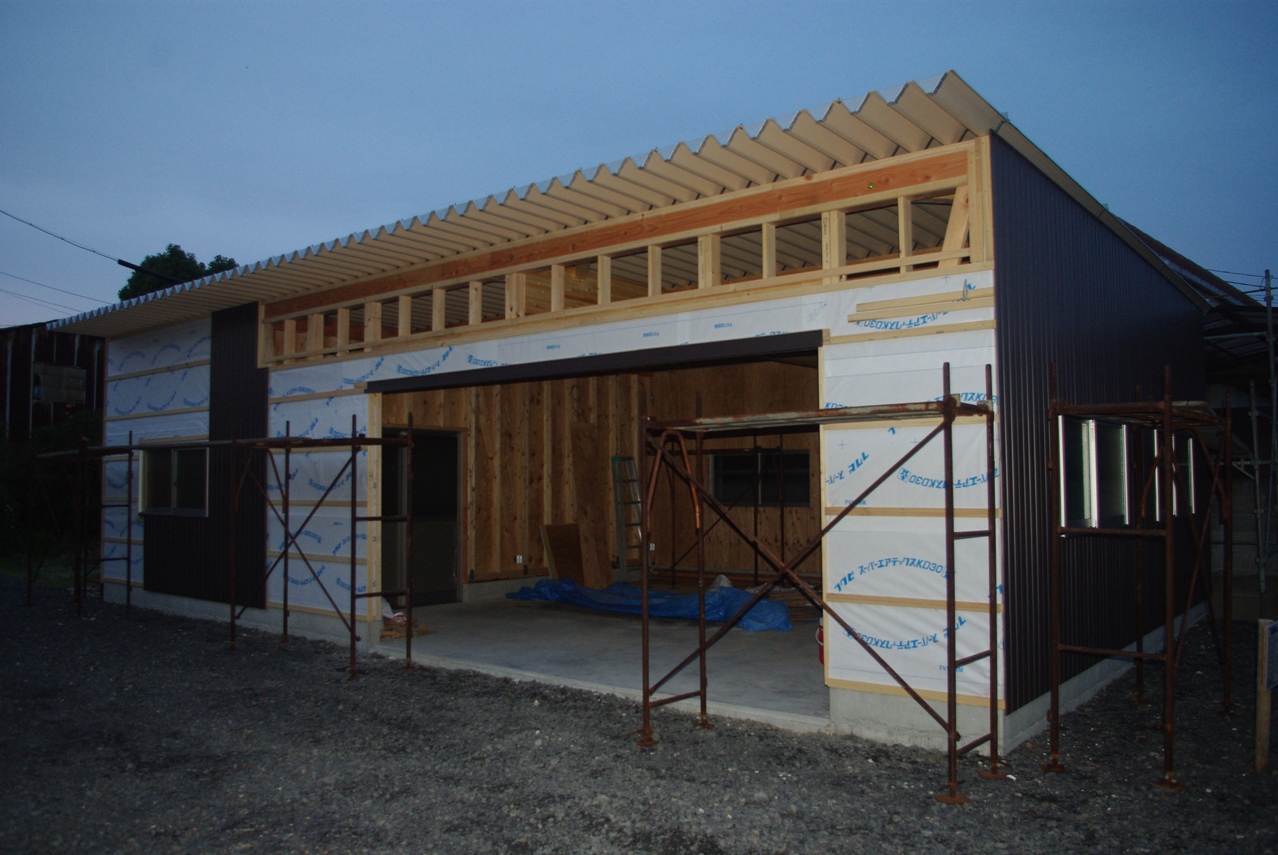 ガレージと倉庫の隔壁もほぼ完成しています。