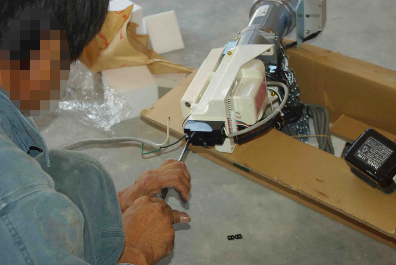 リモコン受信機を、開閉機本体の受信機セットプレートに取り付けます。