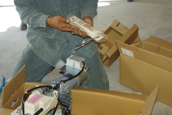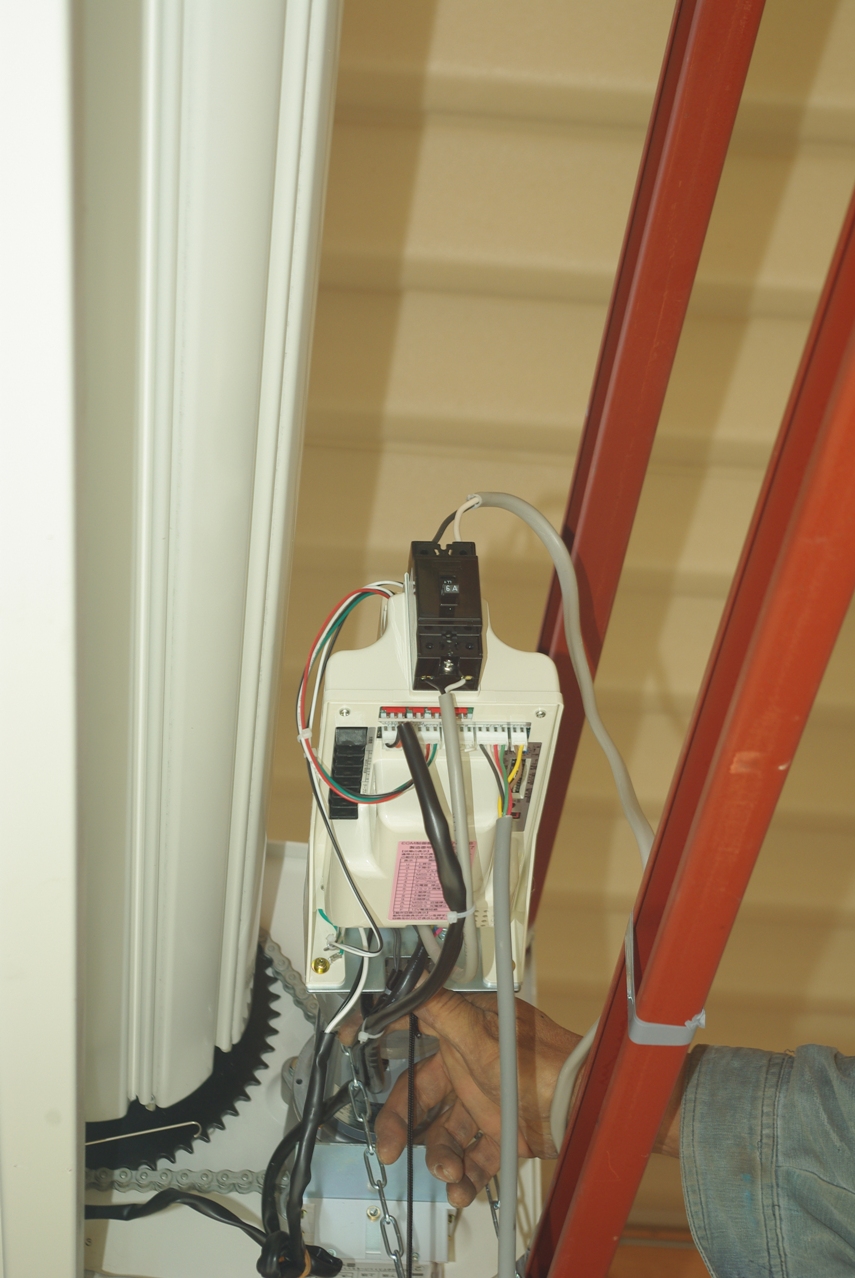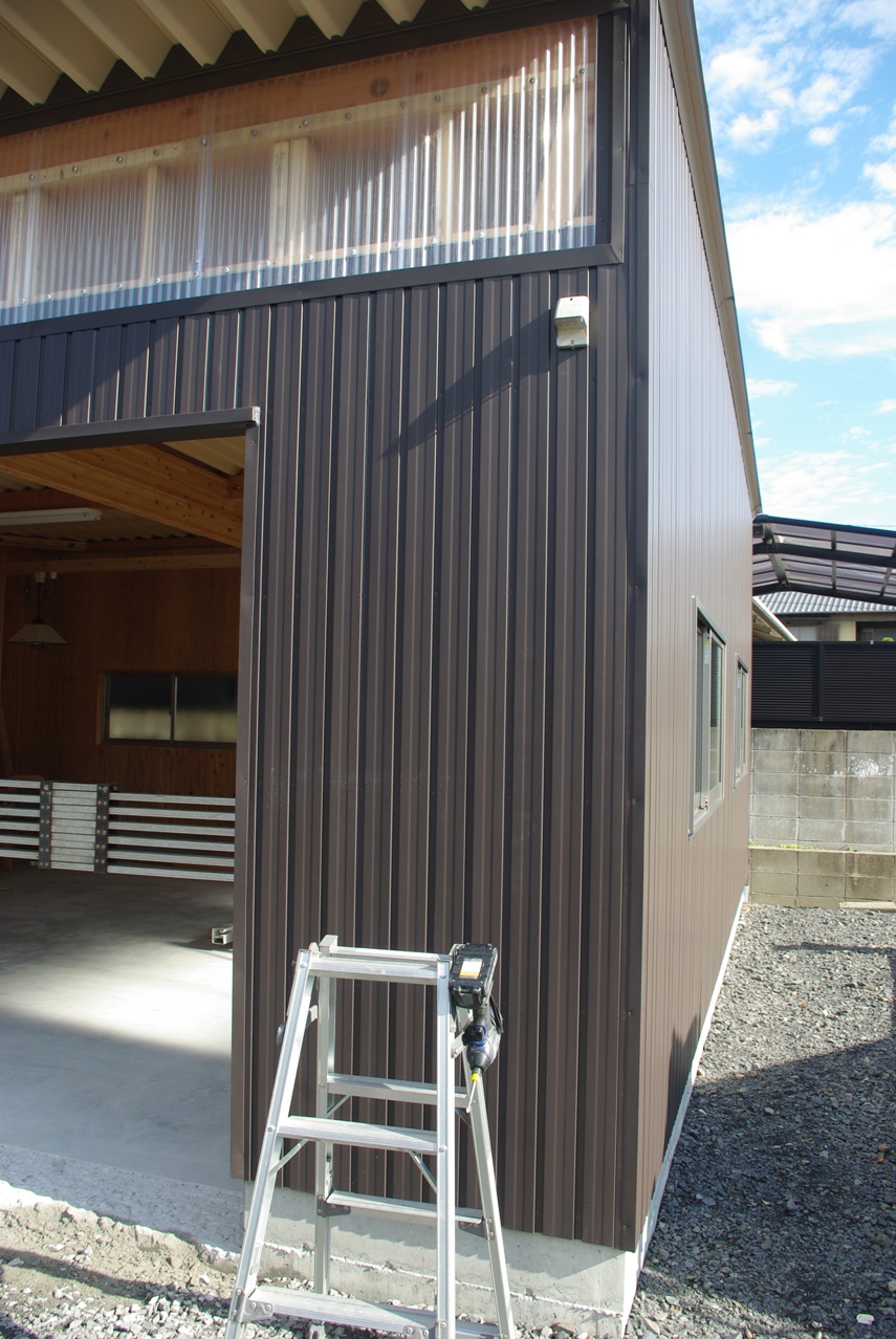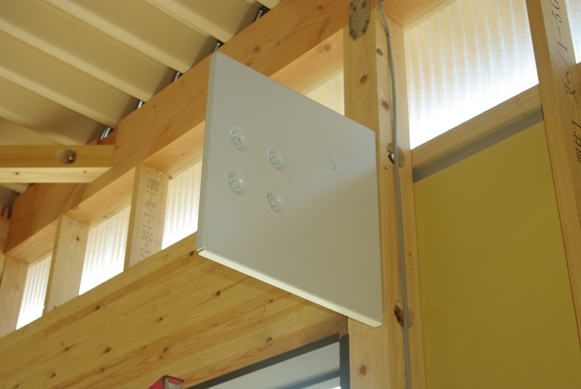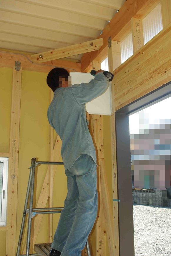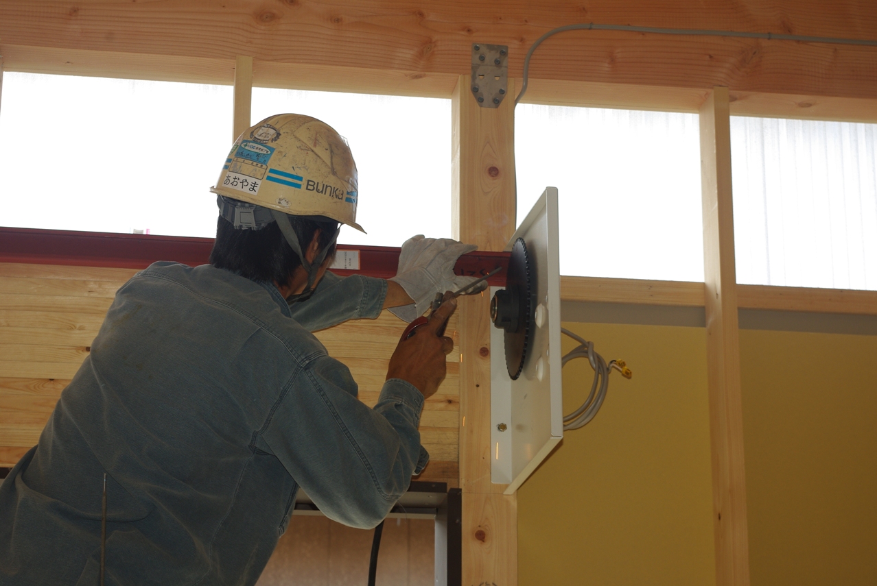 本日は電気屋さんもみえて、電動シャッター用の配線と以前から依頼してあったセンサーライトを取り付けにみえました。